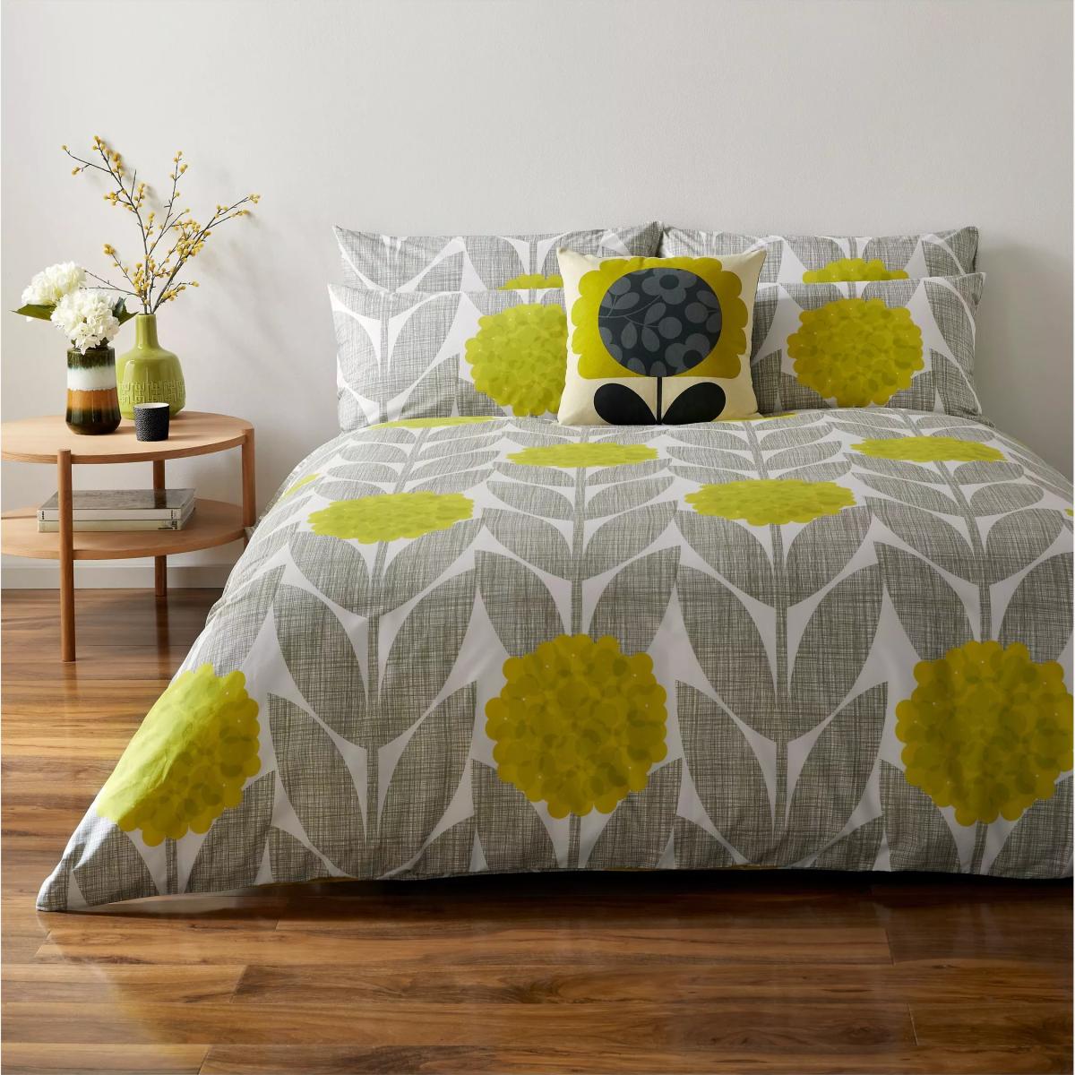 Brighten your bedroom with the classic Blossom Flower print from the Orla Kiely archive. Orla Kiely's signature four petal flower motif is overlaid to create a full and bright flower head, reminiscent of hydrangeas bursting into bloom; whilst the warm grey, scribble textured leaves give this design a cool and contemporary feel. Blossom Flower bed linen is part of an exclusive collaboration with John Lewis & Partners that reflects their shared love of bold colour and a strong graphic style with Orla Kiely. This bedding is made from 100% cotton which imparts its inherent breathability to keep you cool and comfortable throughout the night. A 200 thread count means you'll experience a smooth soft surface come sleep time. The single size comes with one standard pillowcase. All other sizes come with two standard pillowcases. Have you thought about sheeting? Shop here. About Orla Kiely Hailed by many as the 'Queen of Prints', Orla Kiely is a prolific textiles designer who has won global acclaim for her kitsch and colourful designs. Drawing inspiration from nature, her Irish heritage and her grandmother, she has encapsulated these elements in her prints, giving the fresh, vintage-inspired twist for which she is famous. To fit duvet/pillow size (cm) Standard pillowcase, L75 x W50cm Single duvet cover, L200 x W135cm Double duvet cover, L200 x W200cm King duvet cover, L220 x W225cm Super king duvet cover, L220 x W260cm