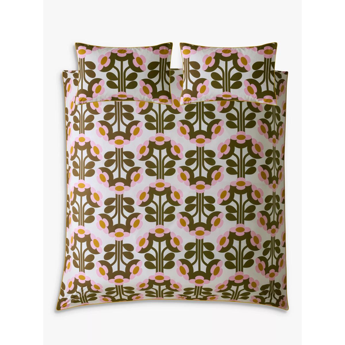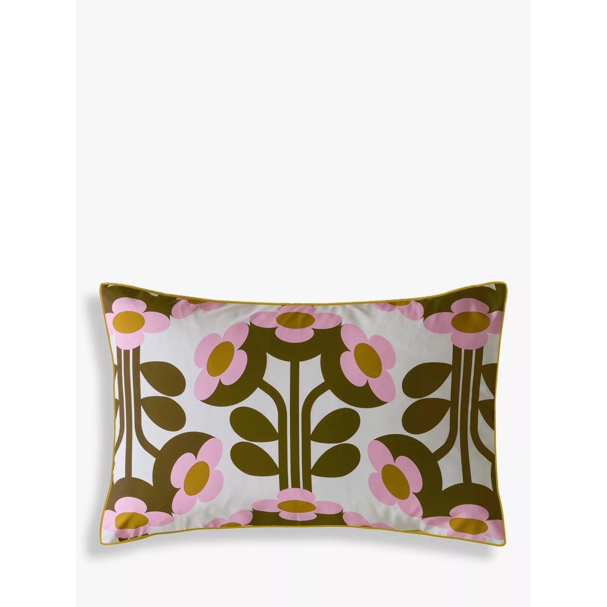 Make a 60s-inspired statement in your bedroom with this bold bedding from Orla Kiely. In her signature style, large buttercup motifs in retro tones decorate this pure cotton, 200 thread count linen, which is finished with flat piped edge detail on the pillowcases and duvet. One pillowcase is included in the single duvet cover set. Two pillowcases are included with all other sizes. To fit duvet/pillow size (cm) Standard pillowcase, L75 x W50cm Single duvet cover, L200 x W135cm Double duvet cover, L200 x W200cm King duvet cover, L220 x W225cm Super king duvet cover, L220 x W260cm