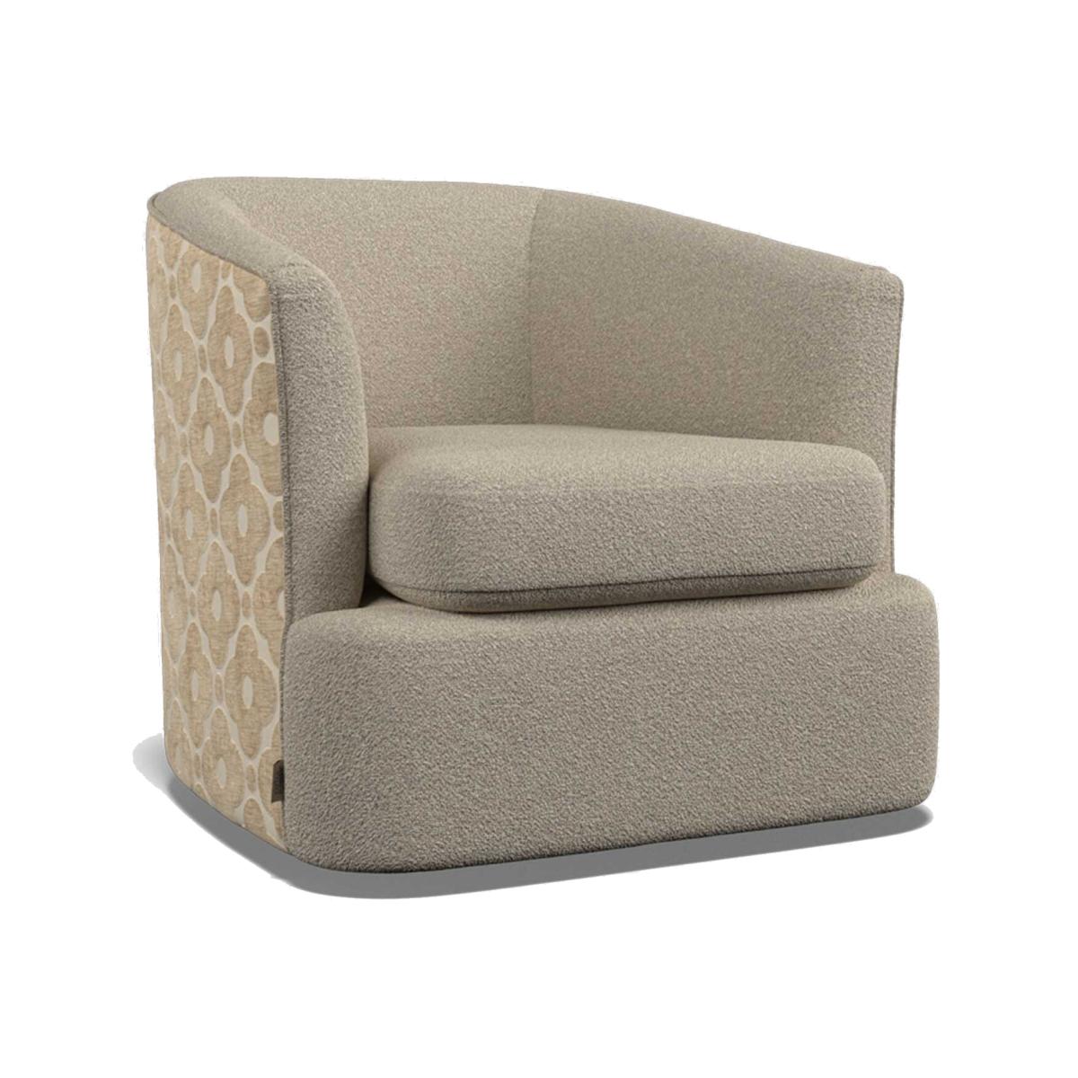 I love this swivel armchair for its contemporary yet playful design, making it versatile for both modern and eclectic interiors. Its neutral tone ensures it integrates seamlessly into various colour schemes, while the patterned side adds a touch of personality without overwhelming the space. It works particularly well in relaxed living areas, reading nooks, or as an accent piece in a more styled lounge. For practical styling, try pairing it with textured cushions or a cosy throw to make it even more inviting. Additionally, positioning it near a statement side table or within a conversational grouping can maximise its comfort and visual appeal, making it a functional statement piece without sacrificing everyday practicality.