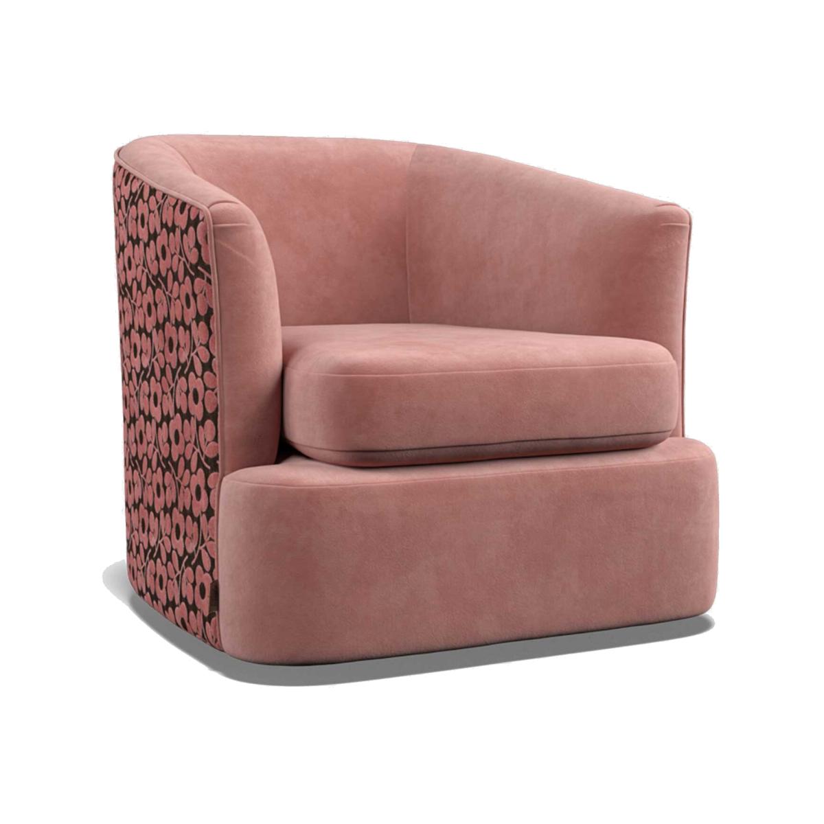 I love this chair for its bold yet versatile design. It’s a great statement piece that adds personality to both contemporary and eclectic interiors. The soft pink velvet combined with the patterned backrest makes it eye-catching without overwhelming a space. It works well in living rooms, bedrooms, or even a stylish reading nook. For styling tips, consider pairing it with neutral or metallic accessories to let it stand out, and don’t be afraid to mix textures-think layered cushions or a luxe throw. Its swivel feature also makes it practical for social spaces, allowing for easy movement and a bit of fun. Overall, it’s a stylish, comfortable addition that brings a touch of charm to any room.