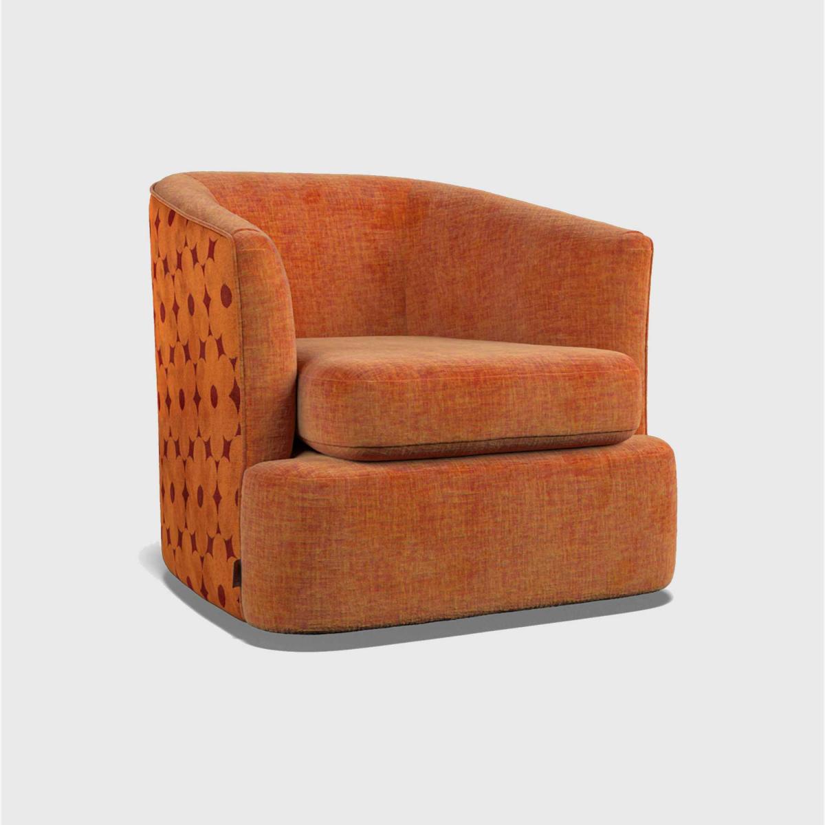 I love this armchair for its bold colour and playful design, making it a stylish statement piece in both contemporary and eclectic interiors. Its swivel feature adds practicality, especially in living rooms or reading nooks where flexibility is key. The fabric’s warm, terracotta hue pairs beautifully with neutral walls or can be complemented with patterned cushions for a more vibrant look. For styling tips, consider placing it alongside soft textiles like woven rugs or muted throw blankets to soften its rich tone, or edge it with metallic accents for a touch of modern sophistication. It works well in cosy nooks, modern apartments, or even in eclectic offices that need a pop of colour and comfort.