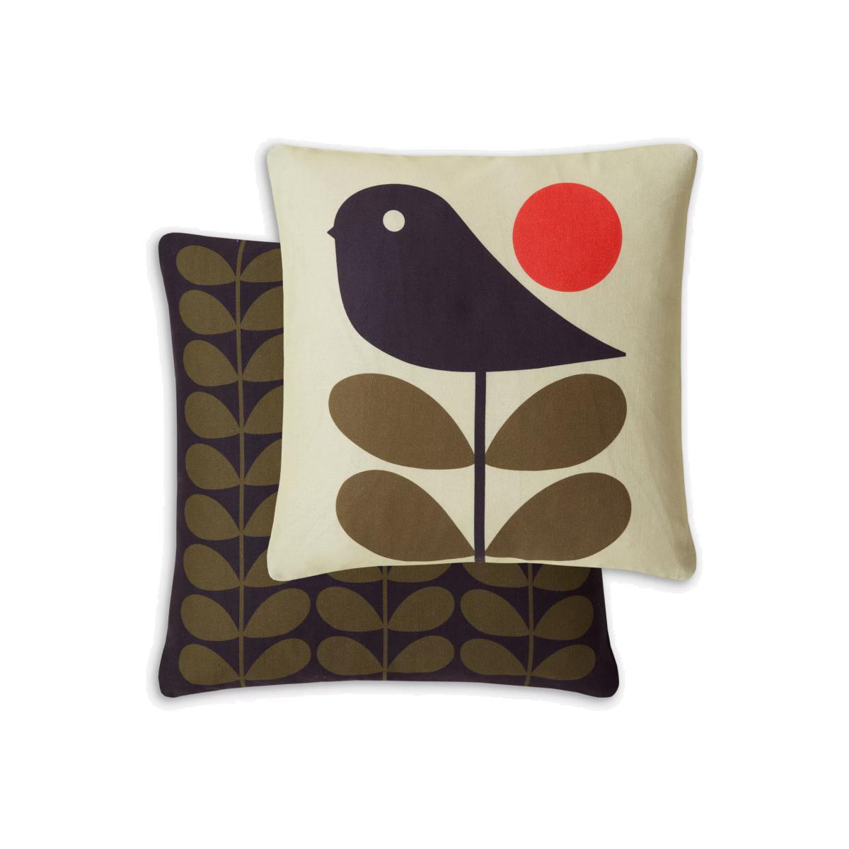 Embrace a retro feel in your home with the Christmas Early Bird cushion. Orla Kiely's classic Early Bird print has been recoloured for Christmas in rich olive and red shades, perfect for adding a festive touch to your home. Hailed by many as the 'Queen of Prints', Orla Kiely is a prolific textiles designer that has won global acclaim for her kitsch and colourful designs. Drawing inspiration from nature, her Irish heritage and her grandmother, she has encapsulated these elements in her prints, giving the fresh, retro-inspired twist for which she is famous.