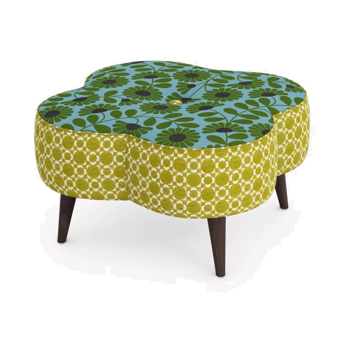 Product Information The super cute Daisy is inspired by the forms and shapes used in Orla Kiely's iconic patterns. Perched on tapered legs the petal shaped design has piped borders and an oversized centre button. Want to see it first? You may want to see and get a feel for the furniture in one of our shops before ordering. We'll be able to tell you where the range you'd like to view is on display.