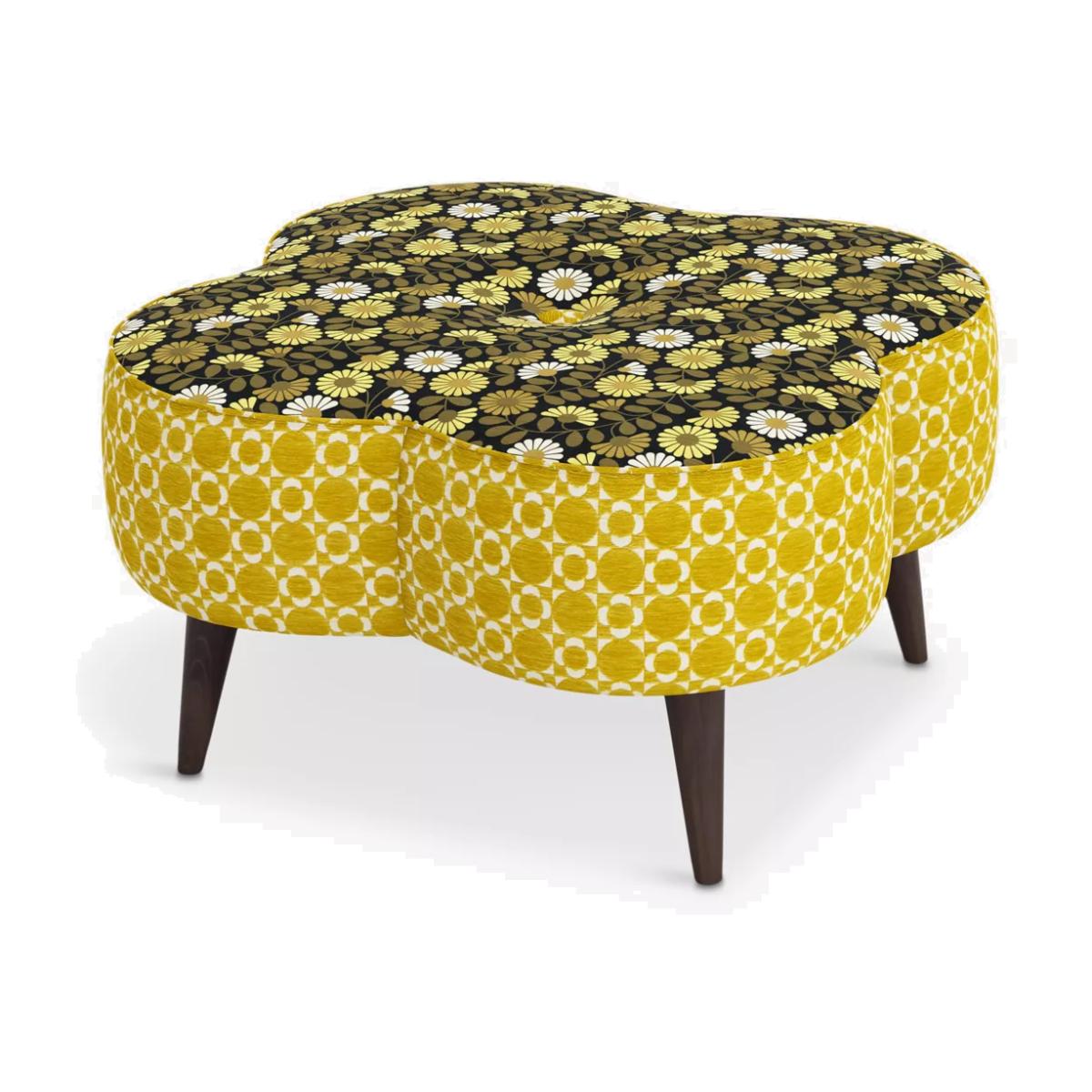 Product Information The super cute Daisy is inspired by the forms and shapes used in Orla Kiely's iconic patterns. Perched on tapered legs the petal shaped design has piped borders and an oversized centre button. Want to see it first? You may want to see and get a feel for the furniture in one of our shops before ordering. We'll be able to tell you where the range you'd like to view is on display.