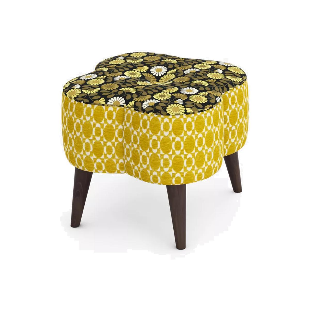 Product Information The super cute Daisy is inspired by the forms and shapes used in Orla Kiely's iconic patterns. Perched on tapered legs the petal shaped design has piped borders and an oversized centre button. Want to see it first? You may want to see and get a feel for the furniture in one of our shops before ordering. We'll be able to tell you where the range you'd like to view is on display.