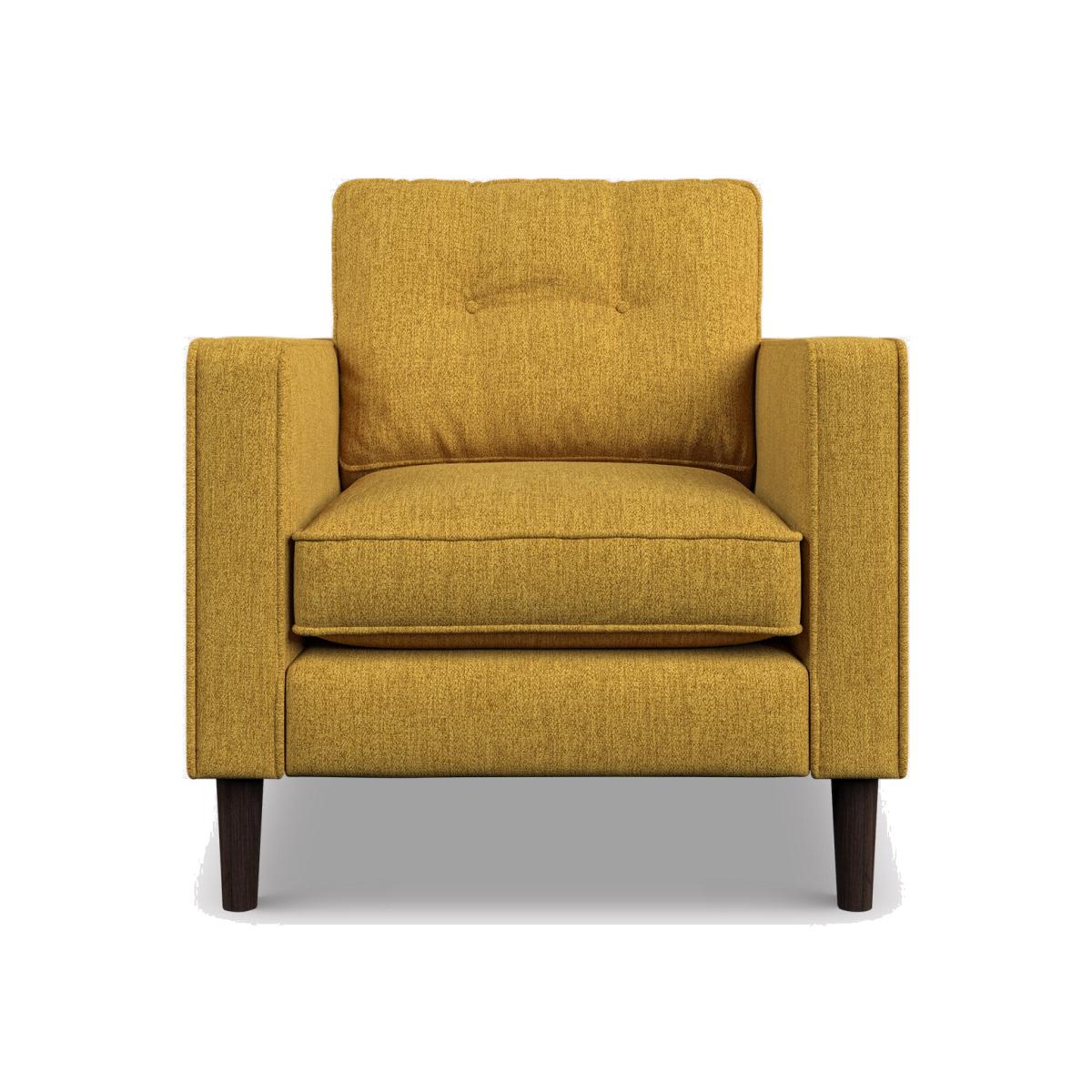 The Ebben Tufted Back Fabric Armchair combines classic charm with modern comfort, making it a stylish addition to any room. Its supportive seat and gently tufted backrest offer a cosy and refined place to relax. Upholstered in durable, high quality fabric, itrsquo;s built for everyday use without compromising on elegance. Finished with sleek tapered legs, this armchair brings a touch of sophistication to your space, whether used on its own or with the full Ebben range.