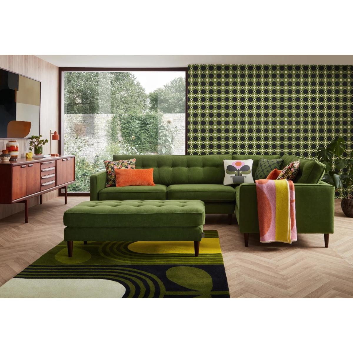 Orla Kiely Ebben Fabric Footstool – Retro Style, Everyday Versatility Complete your space with the perfect finishing touch—the Orla Kiely Ebben Fabric Footstool. Featuring one of Orla Kiely’s iconic retro prints, this stylish accent piece brings colour, pattern, and personality into any room with ease. Designed to complement the Ebben seating range or stand confidently on its own, the footstool offers a comfortable spot to rest your feet, an extra seat for guests, or a chic platform for a tray of drinks or magazines. With its plush top, durable fabric, and solid wooden legs, it blends form and function effortlessly. Whether paired with an armchair or placed as a playful accent, the Ebben Footstool is a small piece with big design impact. Main image shows the Ebben Footstool in Clara Seagrass Fabric. Features: 15 year guarantee on all hardwood frames and steel springs. Pick your favourite from a wide range of fabrics as well as selecting your preferred foot colour. Available in plain all over or pattern all over fabrics. Dimensions: Height 45cm Width 126cm Depth 56cm All screens vary in colour reproduction and whilst every effort has been made to display the colour as accurately as possible it is for guidance only.