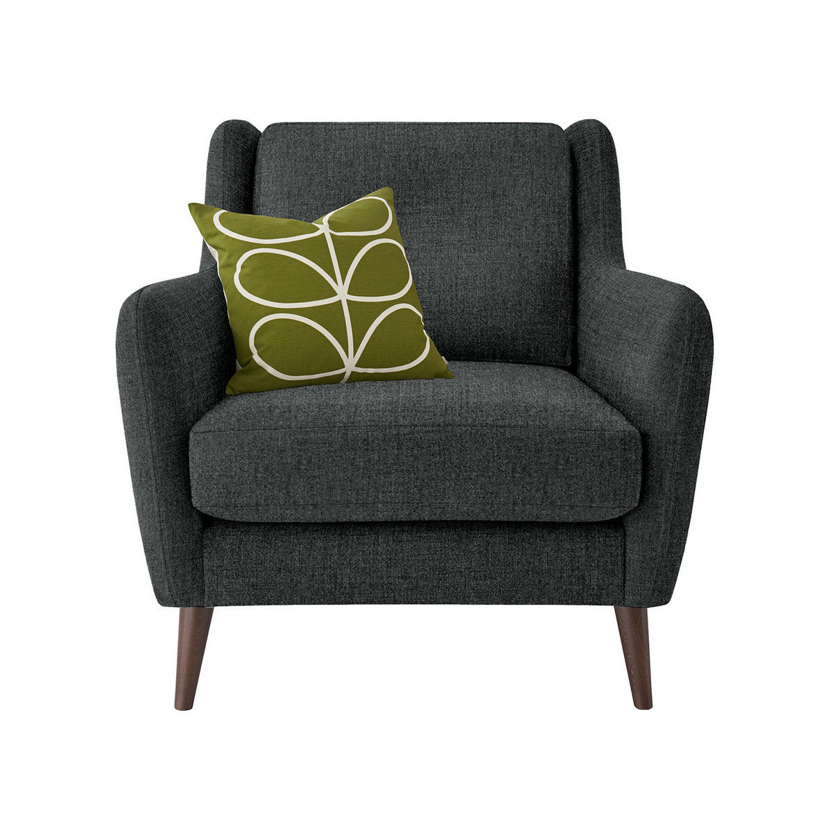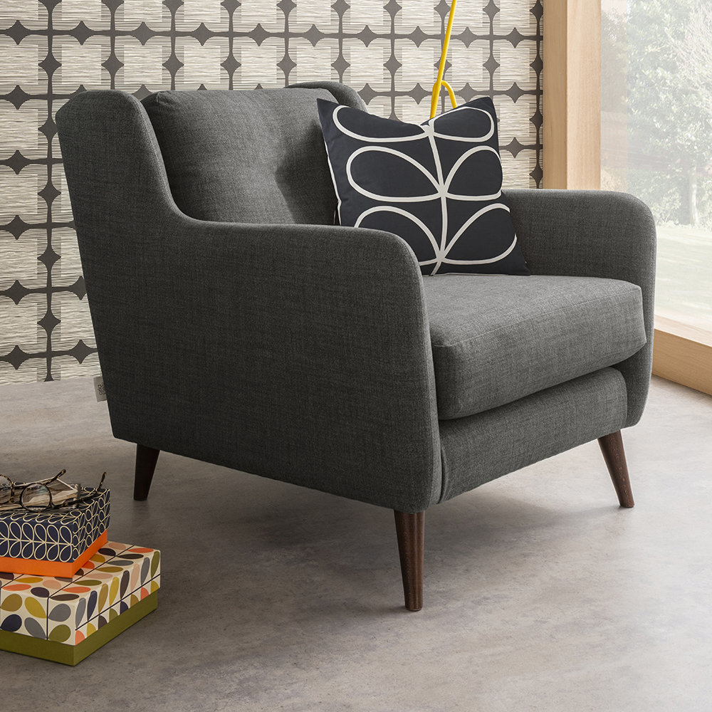 Sit in style thanks to this Fern armchair from Orla Kiely. With curved lines and elegant simplicity this design is available in a choice of upholstery colours. Finished with slim line, splayed American walnut legs, the Fern armchair is a statement piece that will never go out of style. This armchair’s frame is crafted from seasonal hardwood that has been carefully selected from traceable & sustainable sources. All key joints are securely glued, screwed and stapled. Seat cushions feature a foam filling ensuring superior comfort and support.