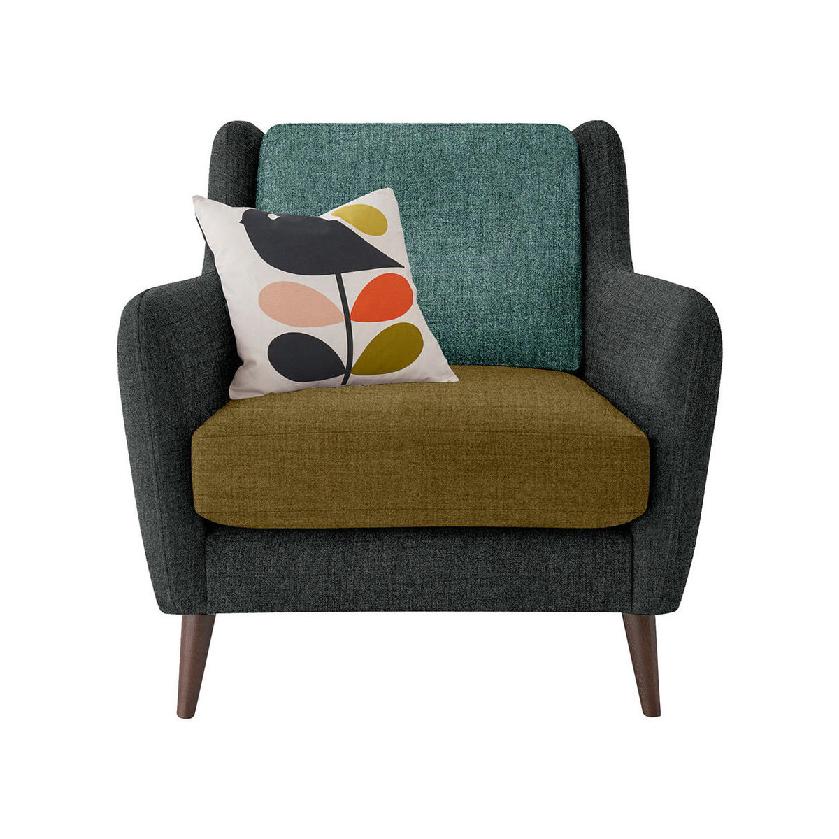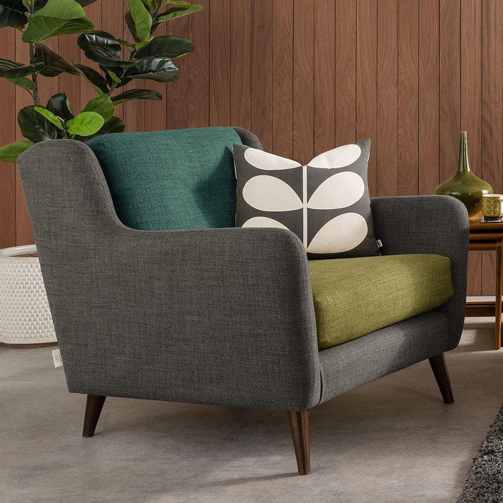 Sit in style thanks to this Fern armchair from Orla Kiely. With curved lines and elegant simplicity this design is available in a choice of upholstery colours. Finished with slim line, splayed American walnut legs, the Fern armchair is a statement piece that will never go out of style. This armchair’s frame is crafted from seasonal hardwood that has been carefully selected from traceable & sustainable sources. All key joints are securely glued, screwed and stapled. Seat cushions feature a foam filling ensuring superior comfort and support.