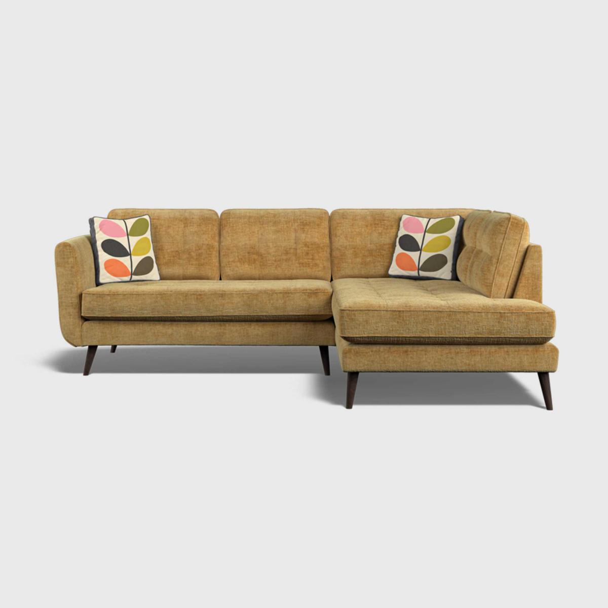 Upholstered in a soft, deep-pile chenille of your choice, the Ivy Left Hand Facing Corner Sofa from Orla Kiely will instill a luxurious and lively touch to your living room. Elegant piping and flared legs add charming detail, while the efficient L-shaped design has room for the whole family. Finished with two funky scatter cushions featuring iconic Orla Kiely prints, this fabric corner sofa makes a real statement.