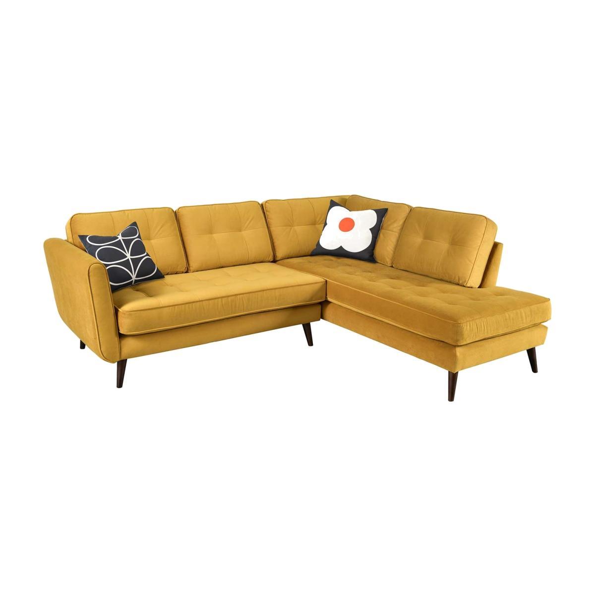 Design. Upholstered in a soft, silky velvet of your choice, the Ivy left hand facing corner sofa from Orla Kiely will lend a luxurious and lively touch to your living room. Elegant piping and flared legs add charming detail, while the efficient L-shaped design has room for the whole family. Finished with two fun scatter cushions featuring iconic Orla Kiely prints, this velvet corner sofa makes a real statement.