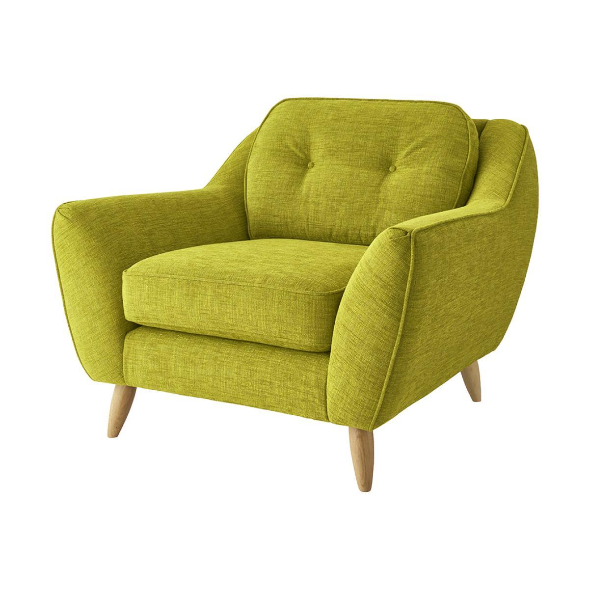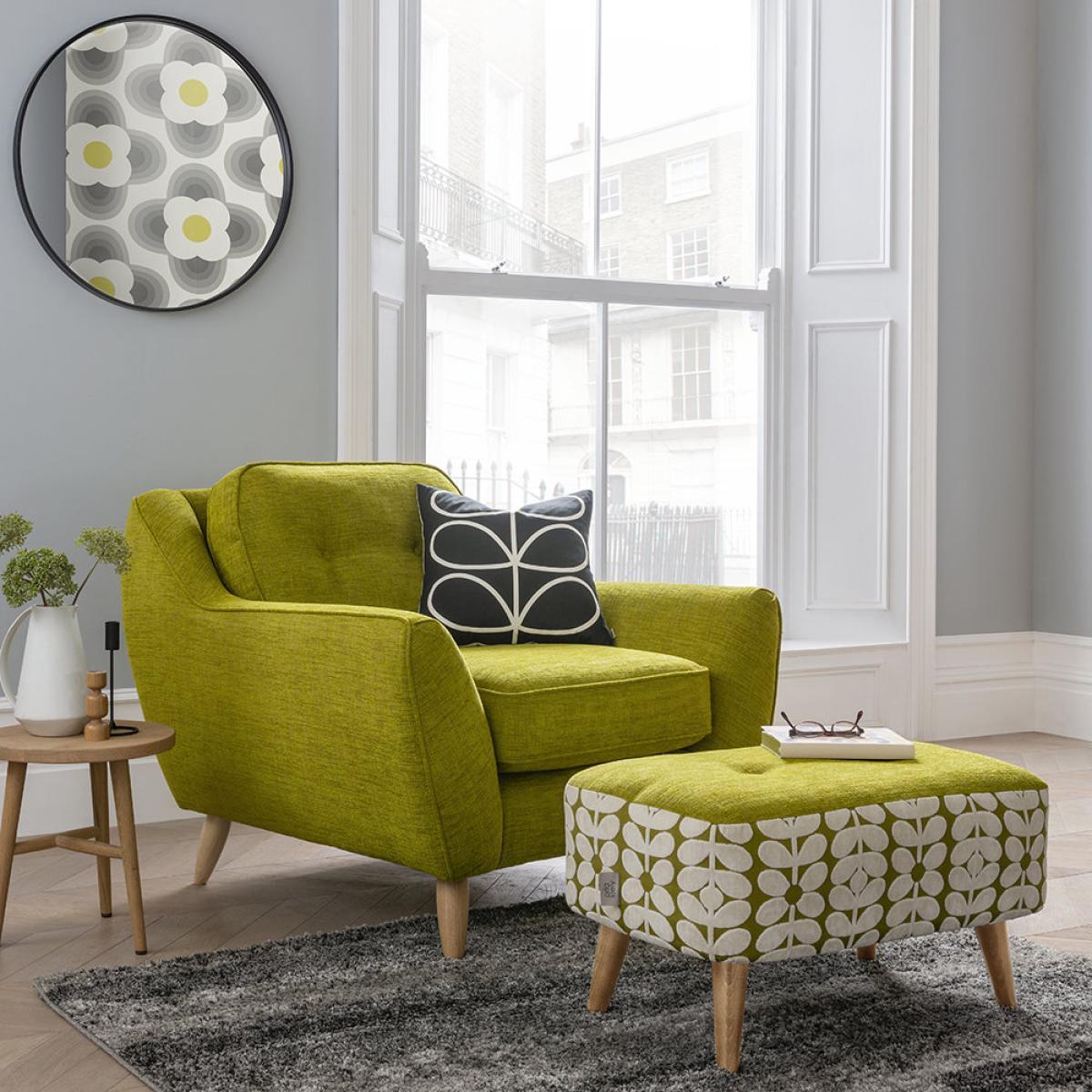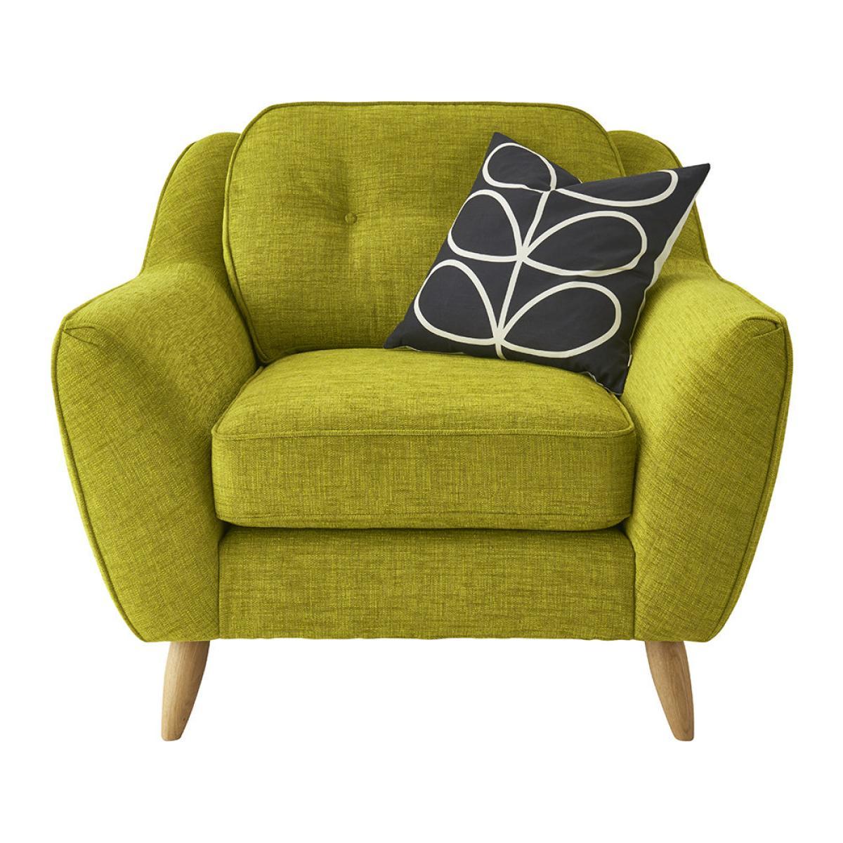 The curved lines and bold olive green shade ensure that this Laurel armchair from Orla Kiely will make an impact wherever it’s placed. Finished with complementing slim smoked oak legs, this design is as comfortable as it is stylish. The frame is crafted from seasonal hardwood that has been carefully selected from traceable & sustainable sources. All key joints are securely glued, screwed and stapled. Seat cushions feature a foam filling ensuring superior comfort and support.