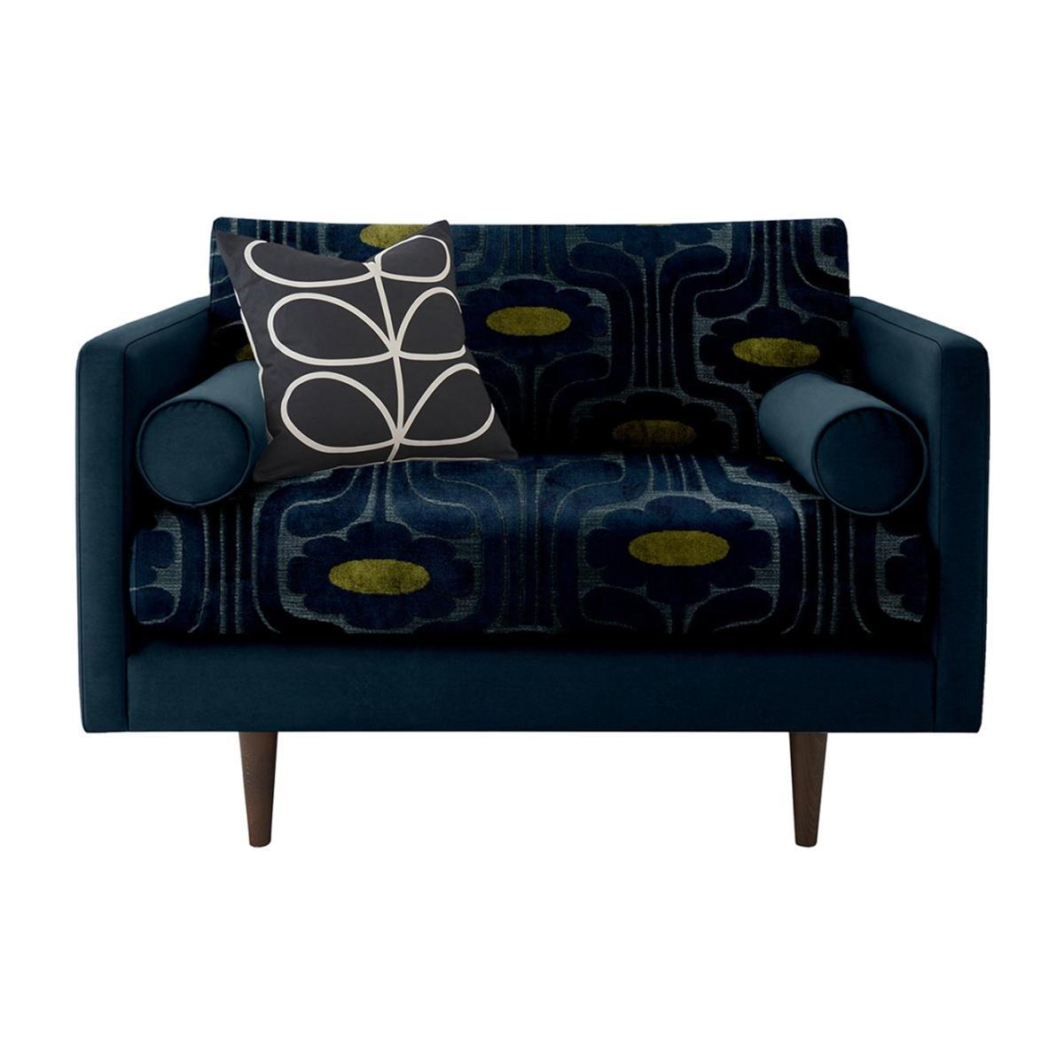 Design. A bold beauty that doesn’t compromise on comfort, the Mimosa snuggle chair from Orla Kiely can be customised to suit your space. Its solid wood feet are available in 3 different wood finishes, a complimentary scatter cushion comes in your choice of iconic Orla Kiely print, and the chair itself is upholstered in one of six stylish patterned velvets or fabrics. Sure to attract attention, this spacious snuggle chair will always be in demand.