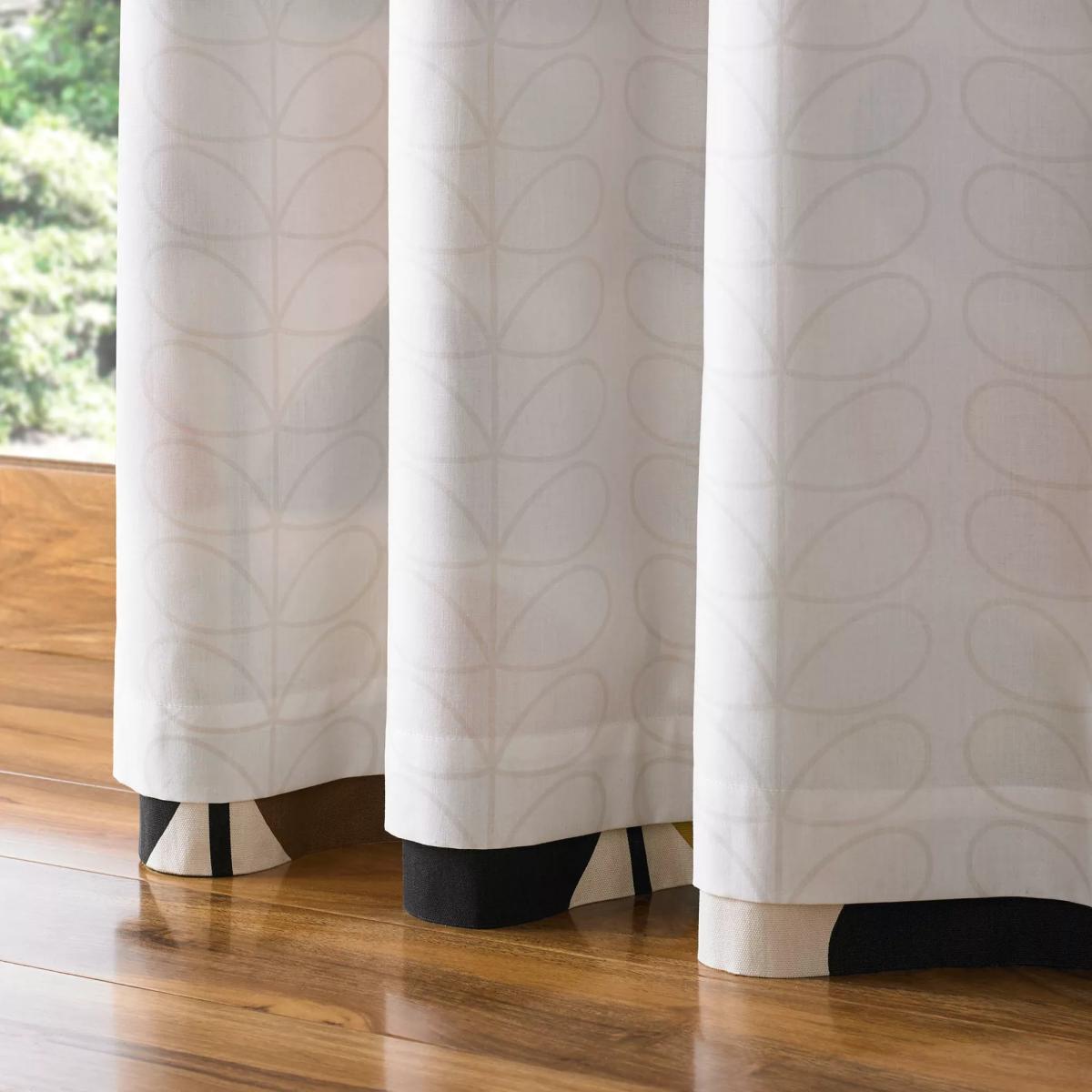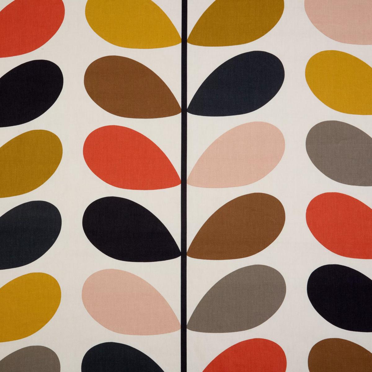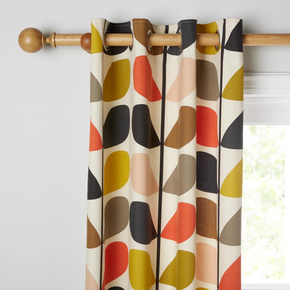 Lined eyelet curtains with Orla Kiely's signature stem print for a cheerful and vibrant look. The lining adds the perfect finish, improving the drape and enhancing the vibrancy of the curtain. Eyelet curtains are quick and easy to fit. Match eyelet colour to your curtain pole for a coordinated look. The width stated indicates the size of one curtain panel when laid completely flat. This pack contains two panels, and the track/pole length we've recommended allows for the two panels to be gathered when the curtains are drawn. For a fuller look, increase the curtain width. One pair of 117cm width curtains will fit a curtain track/pole size of 117-156cm One pair of 168cm width curtains will fit a curtain track/pole size of 133-168cm One pair of 229cm width curtains will fit a curtain track/pole size of 183-229cm Worth knowing... We package our curtains in recycled materials to keep them protected whilst they make their way to you. This means that when they arrive there could be some creases in them. We recommend you hang them for a few days to allow them to flatten and for the creases to fall out. If after this period your curtains still show signs of being folded then follow the ironing instructions on the back of the packaging. Be aware that each style of curtain has different ironing instructions, including heat limitations according to the fabric, so do make sure you follow the guidance provided to get the best results. Do you need a curtain pole/track and accessories?