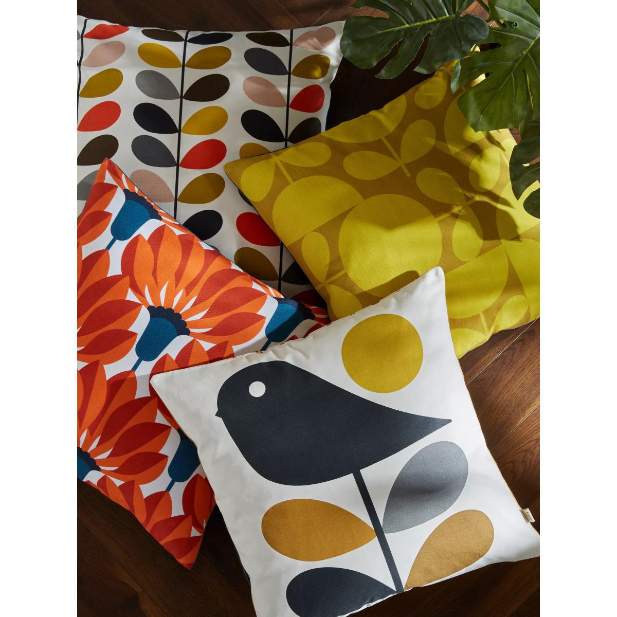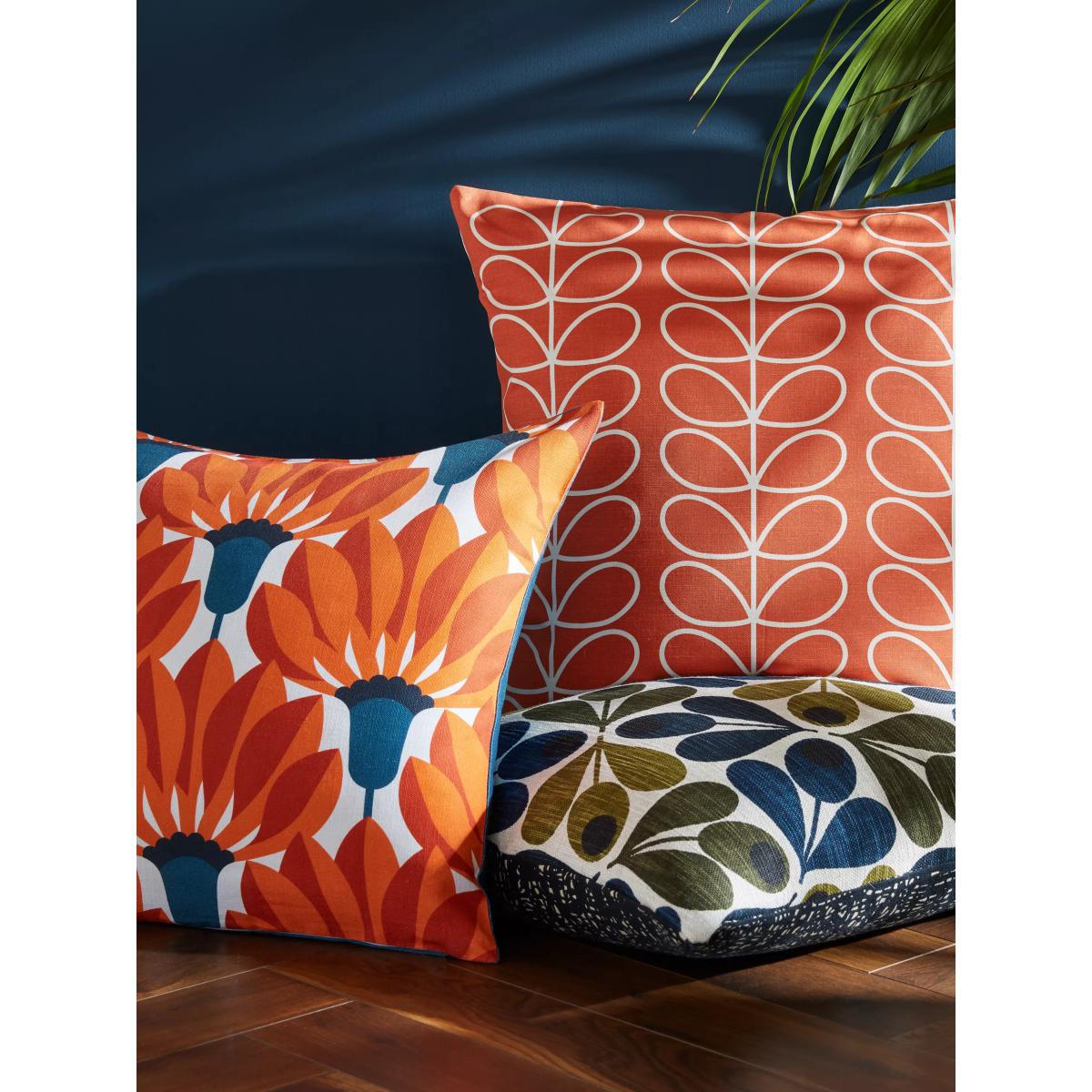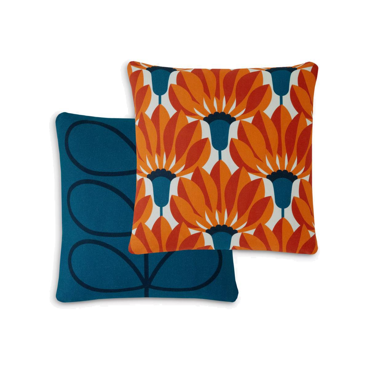 Brighten up your home with the bold colours of the Papyrus print cushion. Feather-filled with a contrast print reverse, the design is bold and stylish. Hailed by many as the 'Queen of Prints', Orla Kiely is a prolific textiles designer that has won global acclaim for her kitsch and colourful designs. Drawing inspiration from nature, her Irish heritage and her grandmother, she has encapsulated these elements in her prints, giving the fresh, retro-inspired twist for which she is famous.