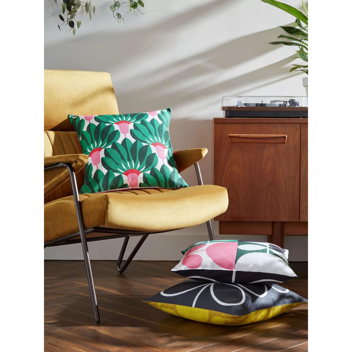 Brighten up your home with the colourful patchwork version of Orla Kiely's classic stem design. Feather-filled with a contrast print reverse. Hailed by many as the 'Queen of Prints', Orla Kiely is a prolific textiles designer that has won global acclaim for her kitsch and colourful designs. Drawing inspiration from nature, her Irish heritage and her grandmother, she has encapsulated these elements in her prints, giving the fresh, retro-inspired twist for which she is famous.