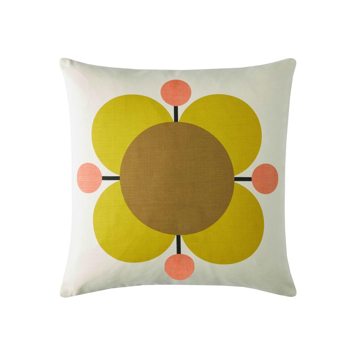 Orla Kiely Pure Cotton Atomic Flower Cushion Yellow Mix