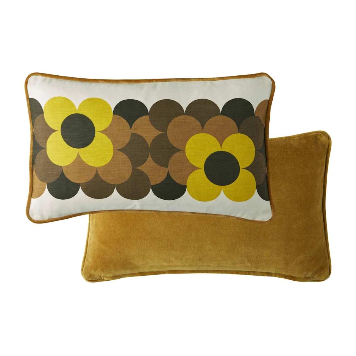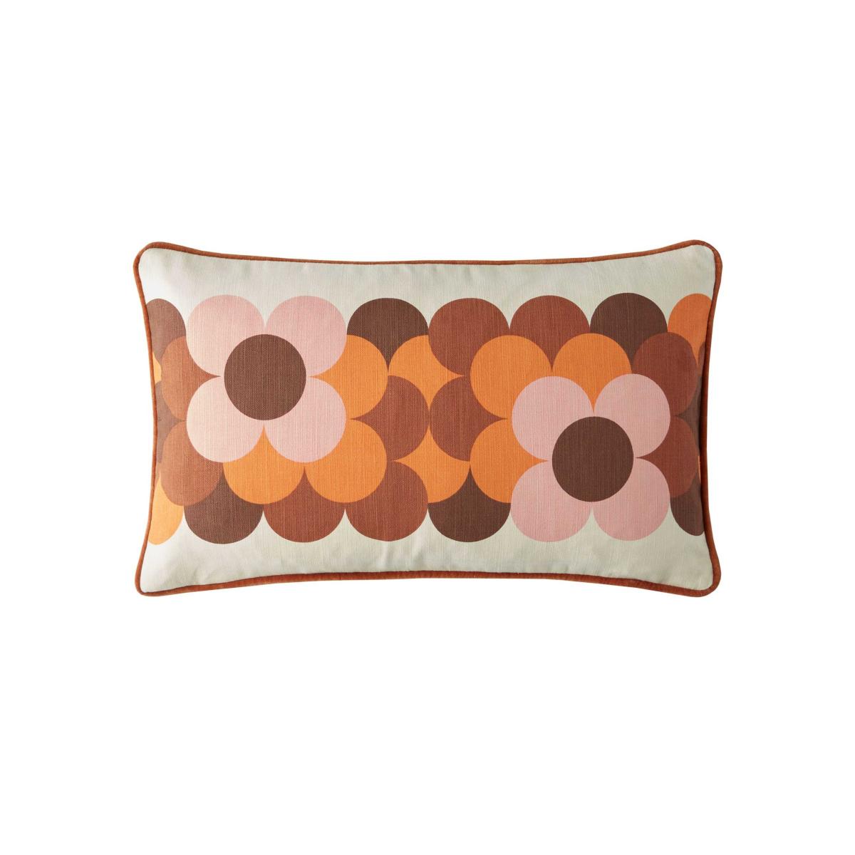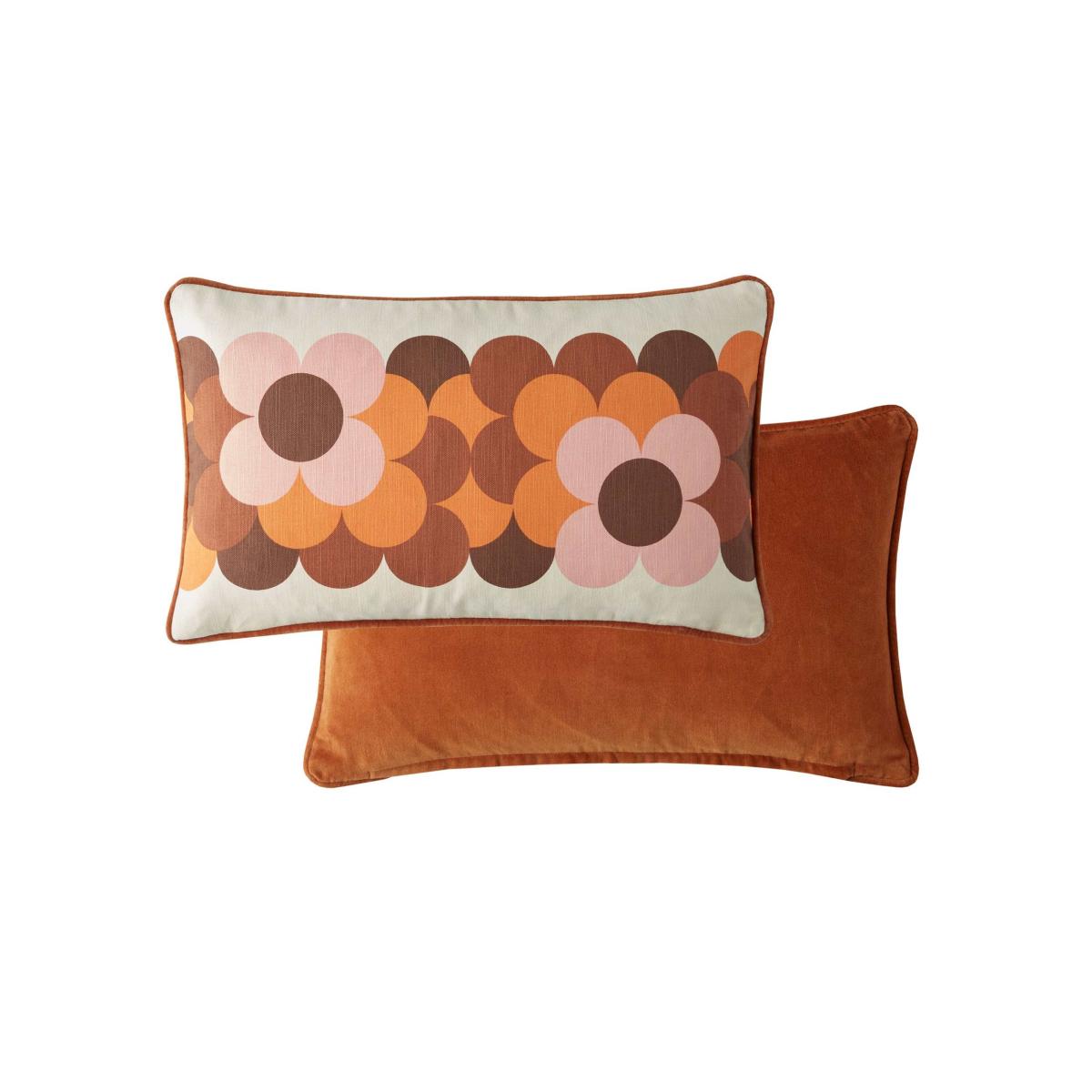 This Orla Kiely cushion channels 70s energy with its bold Retro Flower Stripe design. Rectangular shape with a textured pure cotton front and a smooth velvet reverse. A fine-denier microfibre pad gives it a feather-like feel, and the piped edge adds a neat finishing touch.