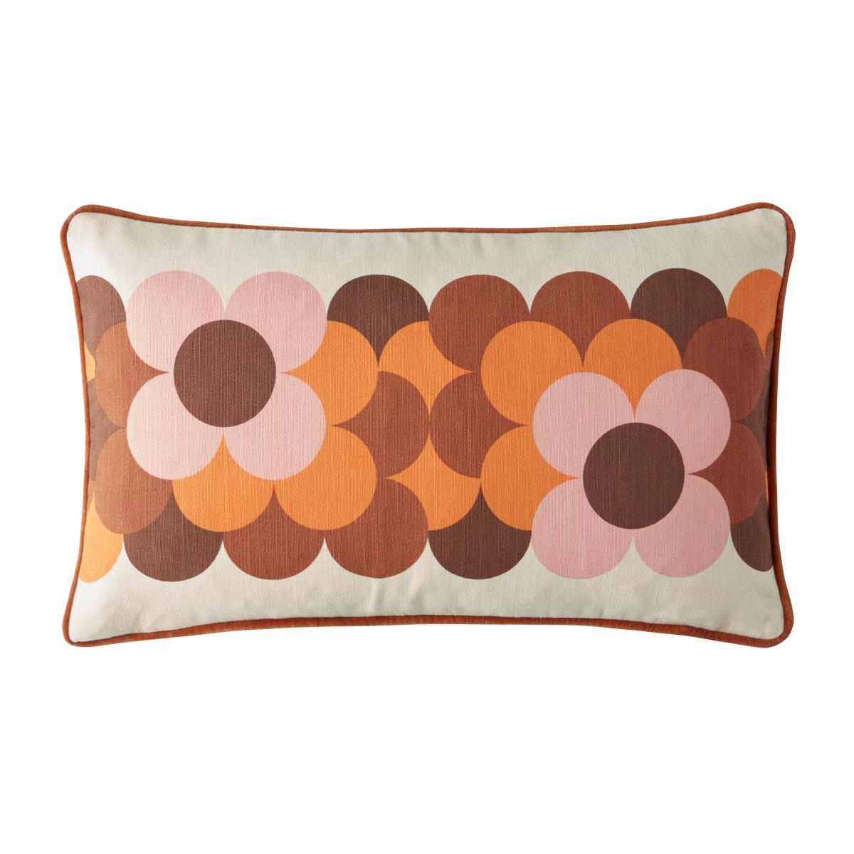 Add a pop of 70s style to your home with this Retro Flower Stripe cushion. This eye-catching cushion features a textured cotton face and a soft, plain cotton velvet reverse and piped edge.