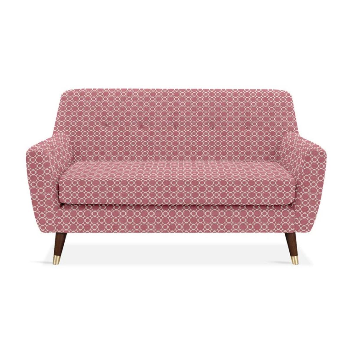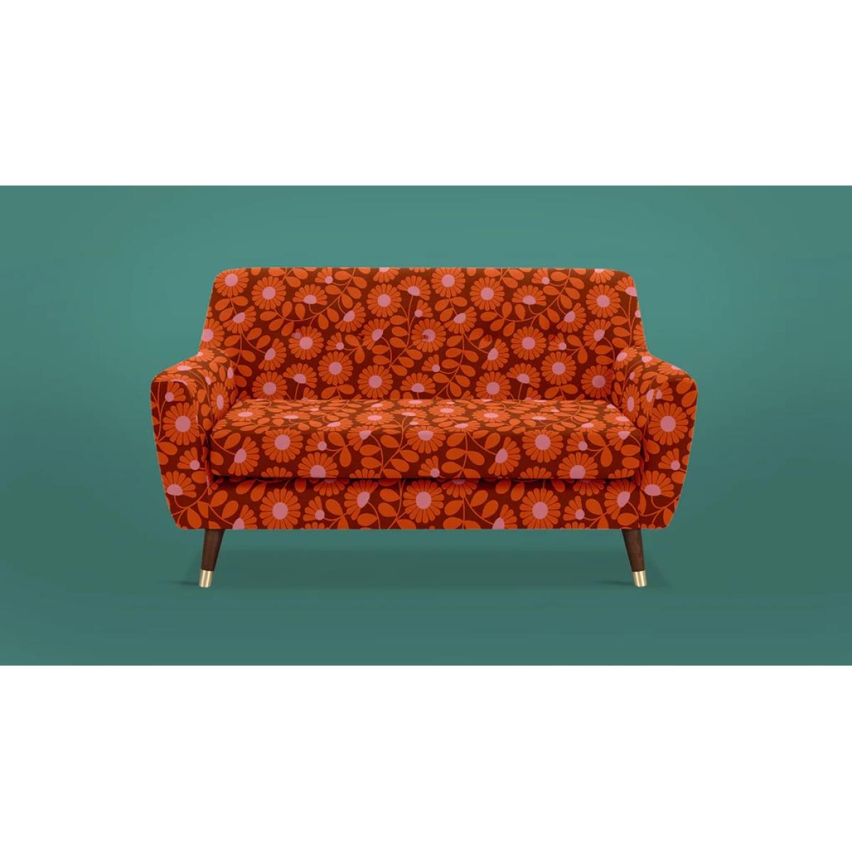 The Rose has been specifically designed to fit into any lounge, bedroom or reading nook with smaller but perfect proportions. The retro inspired style of Rose has subtle button detailing with a comfortable padded full width seat cushion. Available in a range of fabrics including all over patterns, as well as an armchair version, the Rose is the perfect way to brighten your home. Handcrafted to order in the UK. Using only the highest quality of build materials, with our solid wood frames being backed by a 10 year manufacturer structural guarantee. Sofa Dimensions Height 79cm Width 146cm Depth 87cm. Leg finishes available - Smoked Oak (with Brass tip), American Walnut (with Brass tip), Weathered Oak (with Brass tip) Seat Width 118cm Seat Height 47cm Seat Depth 54cm All screens vary in colour reproduction and whilst every effort has been made to display the colour as accurately as possible it is for guidance only.
