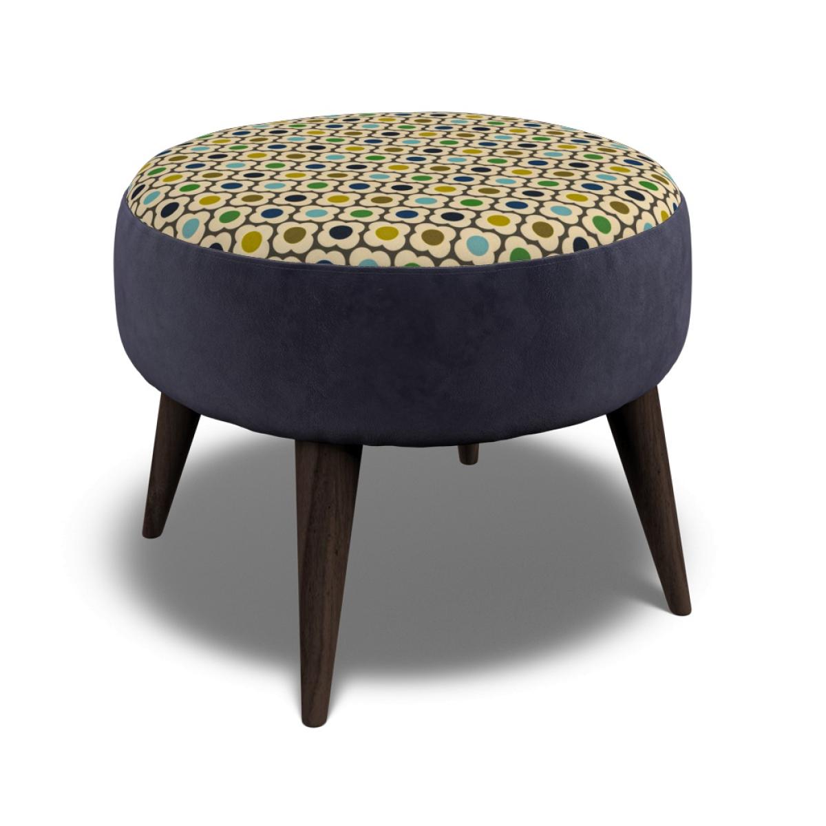 Orla Kiely's upholstered furniture collection brings to life her playful combination of colour and pattern to add a pop of fun to your everyday. Each piece is directly influenced by Orla to apply her signature modern twist to mid-century style. Every item is handmade to order in the UK, allowing for endless authentic Orla Kiely looks to be created using the wide range of colour and exclusive pattern available. The range consists of furniture to suit any space, from large corner sofas to small accent chairs and stools, with all hardwood timber frames backed by a 10 year manufacturer warranty. To complement our range of Orla Kiely sofas, we have curated a retro-inspired footstool collection. Each one can be ordered as a stand-alone item or as part of any of the sofa ranges. Available in a large range of official Orla Kiely fabrics, our footstools can be a bold accessory piece or used to complement any room's decor, including living rooms, studies, hallways, and bedrooms. The Roundwood Footstool is the perfect pop of mid-century style and colour for your living room. With plain sides and a contrasting patterned top in a choice of Orla Kiely patterns. Dimensions (Metal Legs) H 32cm x W 55cm x D 55cm Dimensions (Wood Legs) H 32cm x W 38cm x D 55cm. All screens vary in colour reproduction and whilst every effort has been made to display the colour as accurately as possible it is for guidance only.