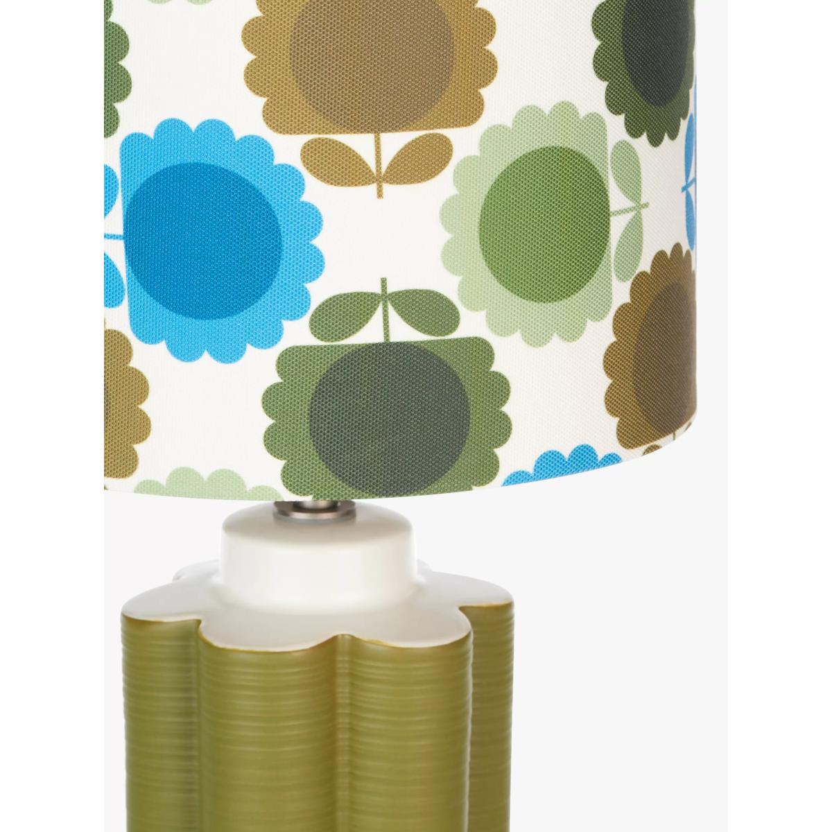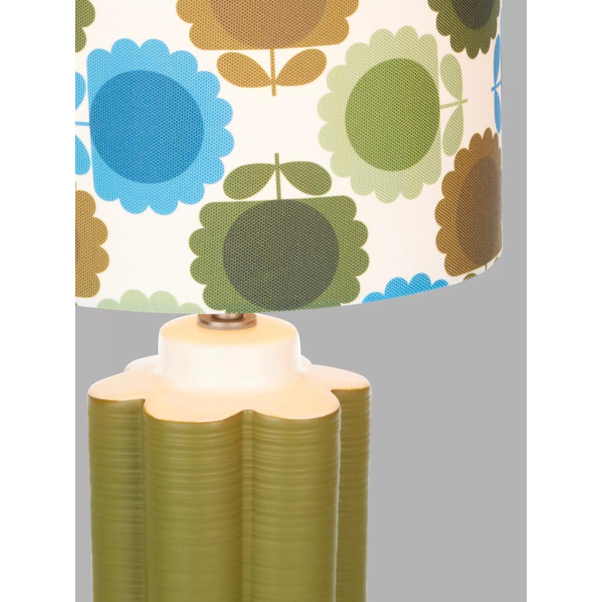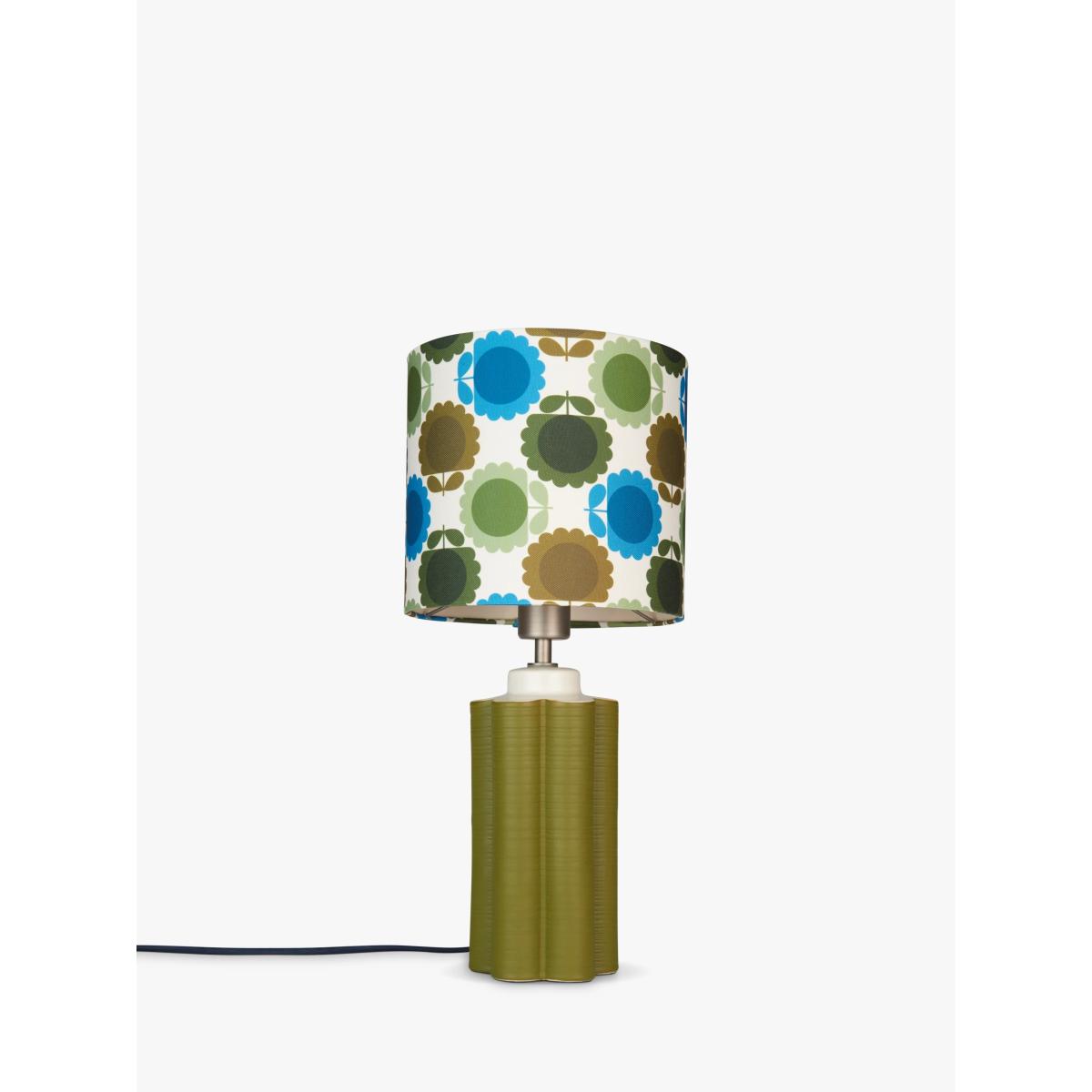 This retro table lamp celebrates the playful Orla Kiely print and pattern across both the ceramic base and fabric lampshade and will accent your space with colour. The tall scalloped base is painted in a matt glaze and the shade is made from faux linen to enhance a warm glow of light.