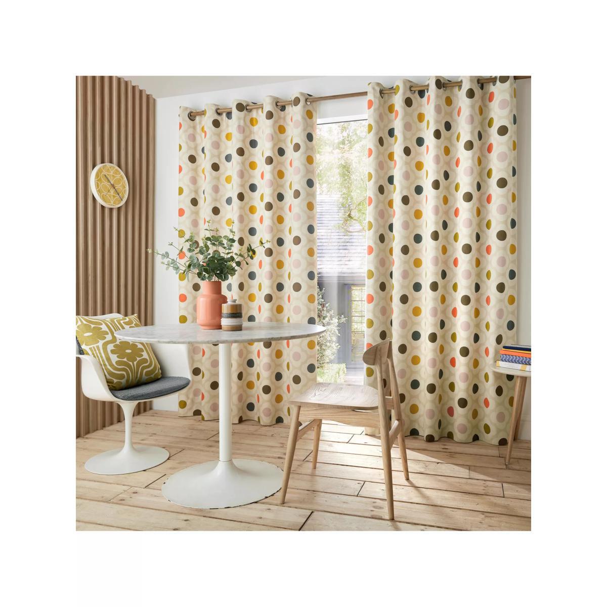 Printed with a 70s inspired Spot Flower design these Orla Kiely curtains will bring a cheery, retro touch to your room. The eyelet heading makes them ready to hang and creates large, even folds. And the blackout lining eliminates light so you can get a restful night's sleep. Warm in winter, cool in summer As the blackout lining on these curtains blocks out sunlight they help keep your room cool as well as dark. This lining also adds an extra layer of insulation to the curtains, giving them the added benefit of being thermal. They protect against both heat loss and heat gain, regulating the temperature of your room so you’re kept warm in winter and cool in summer. The width stated indicates the size of one curtain panel when laid completely flat. This pack contains two panels, and the track/pole length we've recommended allows for the two panels to be gathered when the curtains are drawn. One pair of 117cm width curtains will fit a curtain track/pole size 117-167cm One pair of 168cm width curtains will fit a curtain track/pole size 133-168cm One pair of 229cm width curtains will fit a curtain track/pole size 183-229cm Do you need a curtain pole and accessories?