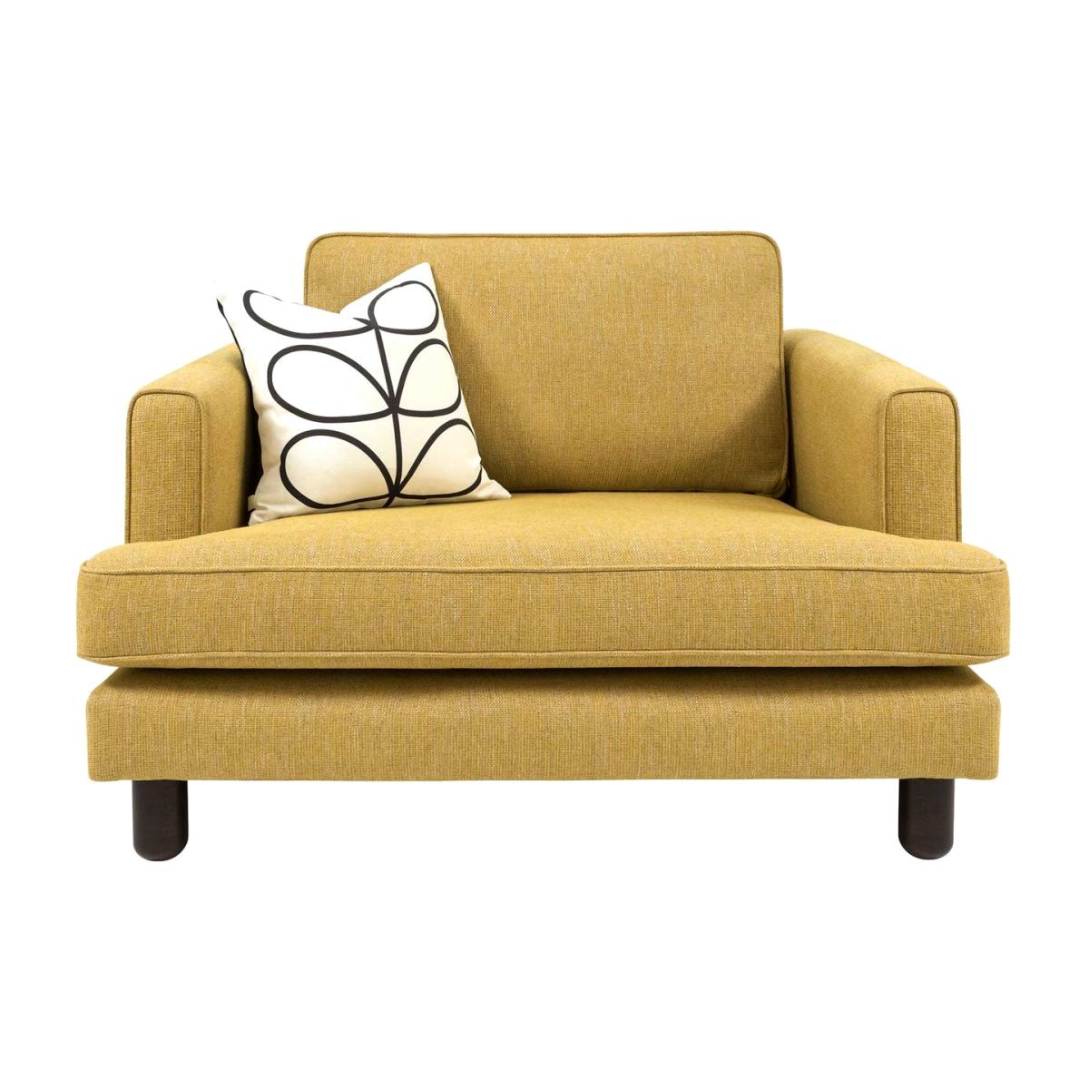 Frame: Seasonal Hardwood carefully selected from traceable and sustainable sources. All key joints are securely glued, screwed and stapled Suspension: Seat features a full zig-zag sprung platform for added flexibility and back suspension is tensioned woven elastic webbing covered in foam Cushions: Seat cushions are foam filled for superior comfort, back cushions are high quality fibre filled Scatter cushions: x1 100% White duck feather filled available in a choice of 10 designs Feet: Solid wood available in a choice of American Walnut, Smoked Oak or Weathered Oak finish Care: Fixed covers with removable cushion covers for professional cleaning only Orla Kiely Willow Snuggle Armchair, Yellow Fabric | Barker & Stonehouse