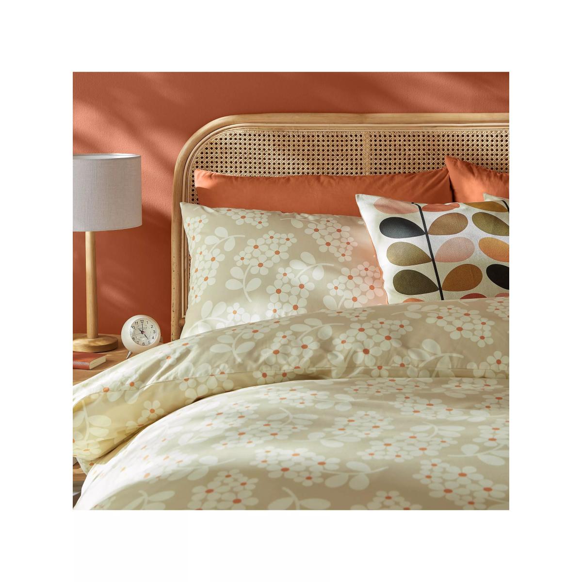 Create a serene, Japandi-inspired interior with this stylised floral design from Orla Kiely. Floral sprigs in warm, natural shades of cream and taupe and a bright pop of clementine decorate this 100% cotton duvet cover set. The single size comes with one standard pillowcase. All other sizes come with two standard pillowcases. About Orla Kiely Hailed by many as the 'Queen of Prints', Orla Kiely is a prolific textiles designer who has won global acclaim for her kitsch and colourful designs. Drawing inspiration from nature, her Irish heritage and her grandmother, she has encapsulated these elements in her prints, giving the fresh, vintage-inspired twist for which she is famous. To fit duvet/pillow size (cm) Standard pillowcase, L75 x W50cm Single duvet cover, L200 x W135cm Double duvet cover, L200 x W200cm King duvet cover, L220 x W225cm Super king duvet cover, L220 x W260cm