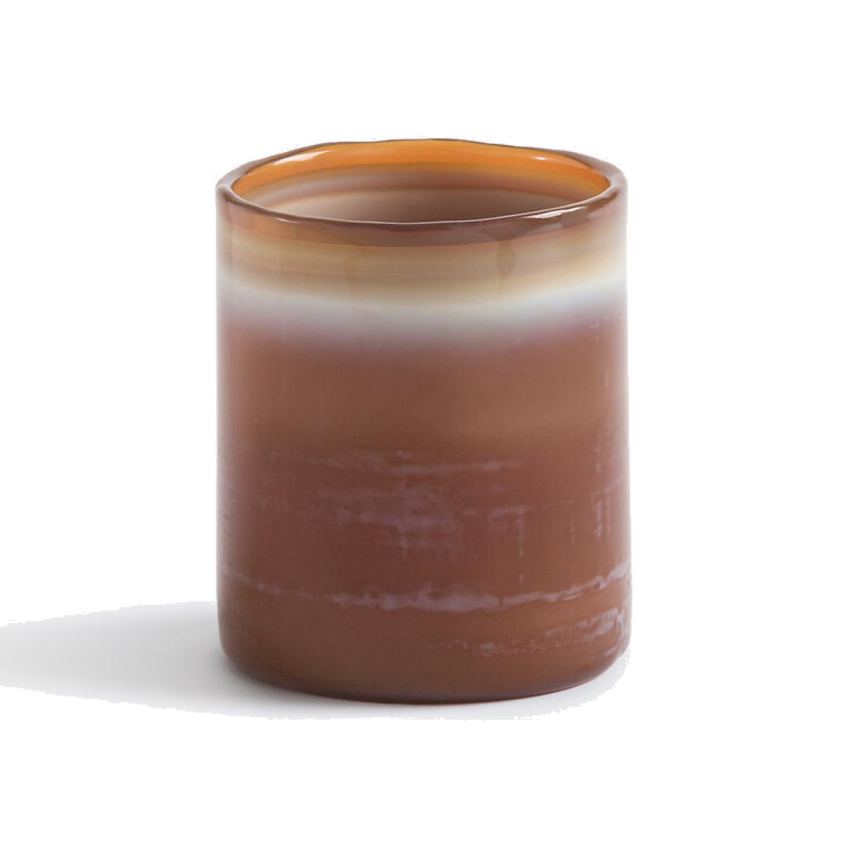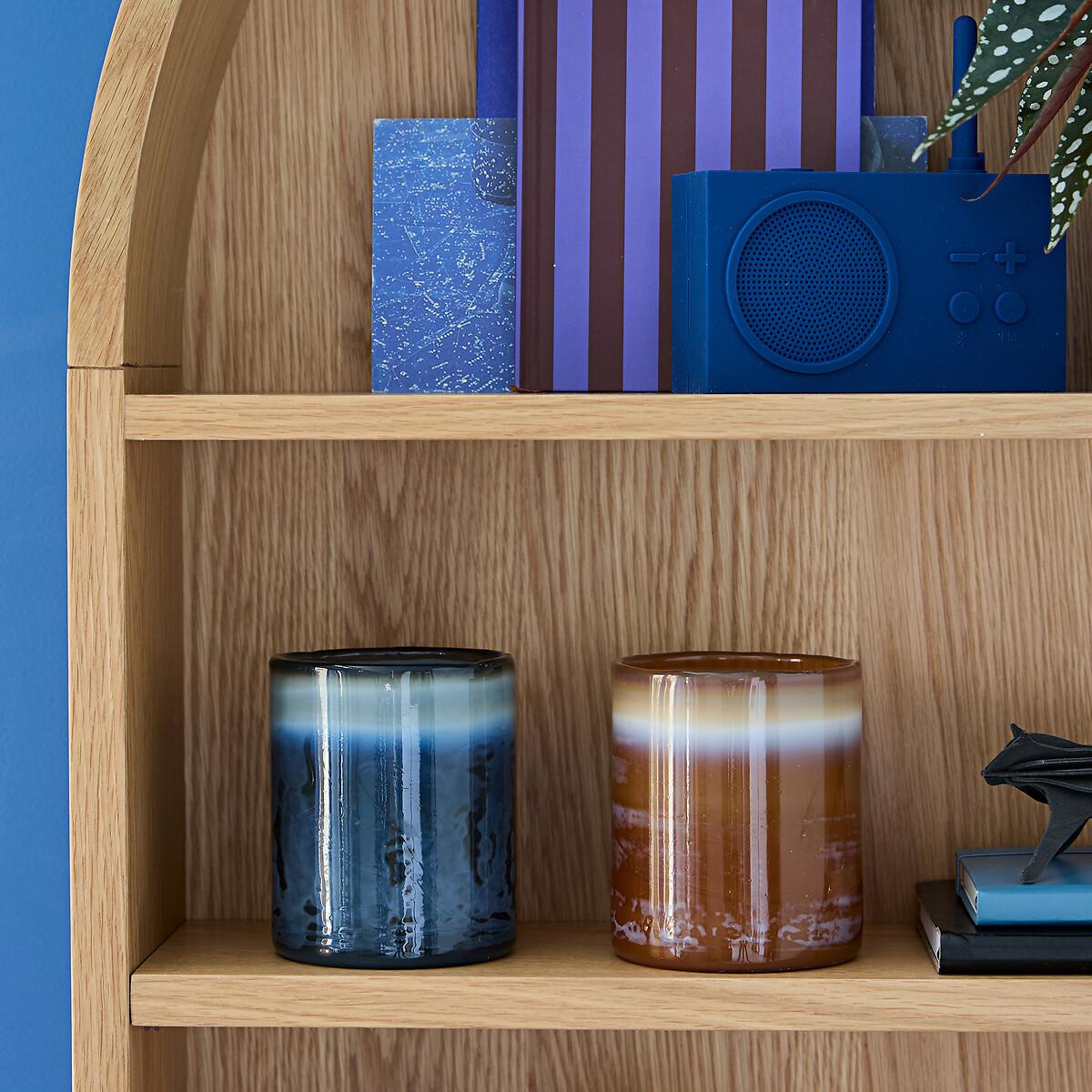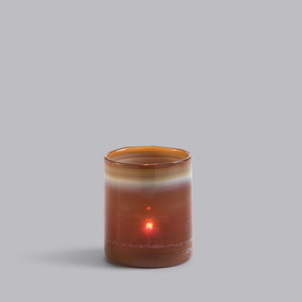 I love this tealight holder for its warm, earthy tones and versatile size, making it a simple yet impactful addition to various interiors. It works particularly well in cosy, relaxed settings such as Scandinavian-inspired or boho spaces, where natural materials and muted colours are key. Practical styling tips include grouping a few in different colours or textures on a coffee table or shelf for added visual interest, or placing it in a corner to create a gentle ambient glow. Its coloured glass finish adds depth and a touch of subtle colour without overwhelming the space, making it ideal for layering with other decorative elements or plain backgrounds.