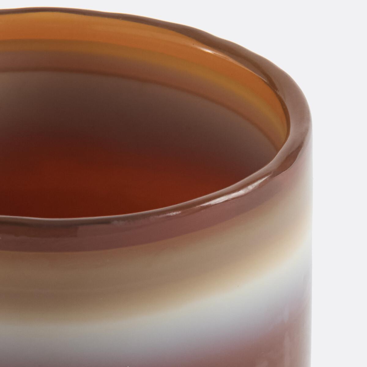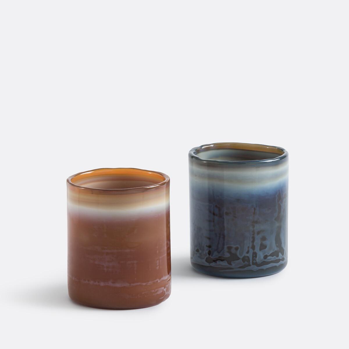 Deep tonal gradation and straight shape. Orlan, the hand-crafted tealight holder in colourful glass. Slide in a candle for a warm, nuanced lighting effect. Product Details • Coloured glass • For tealight candles (not provided) • Hand-crafted, each piece is unique: colours and dimensions may vary from product to product • Shipped in packaging specifically designed to avoid any risk of breakage. Dimensions • Diameter: 9cm/3.5" • Height: 11cm/4.5"