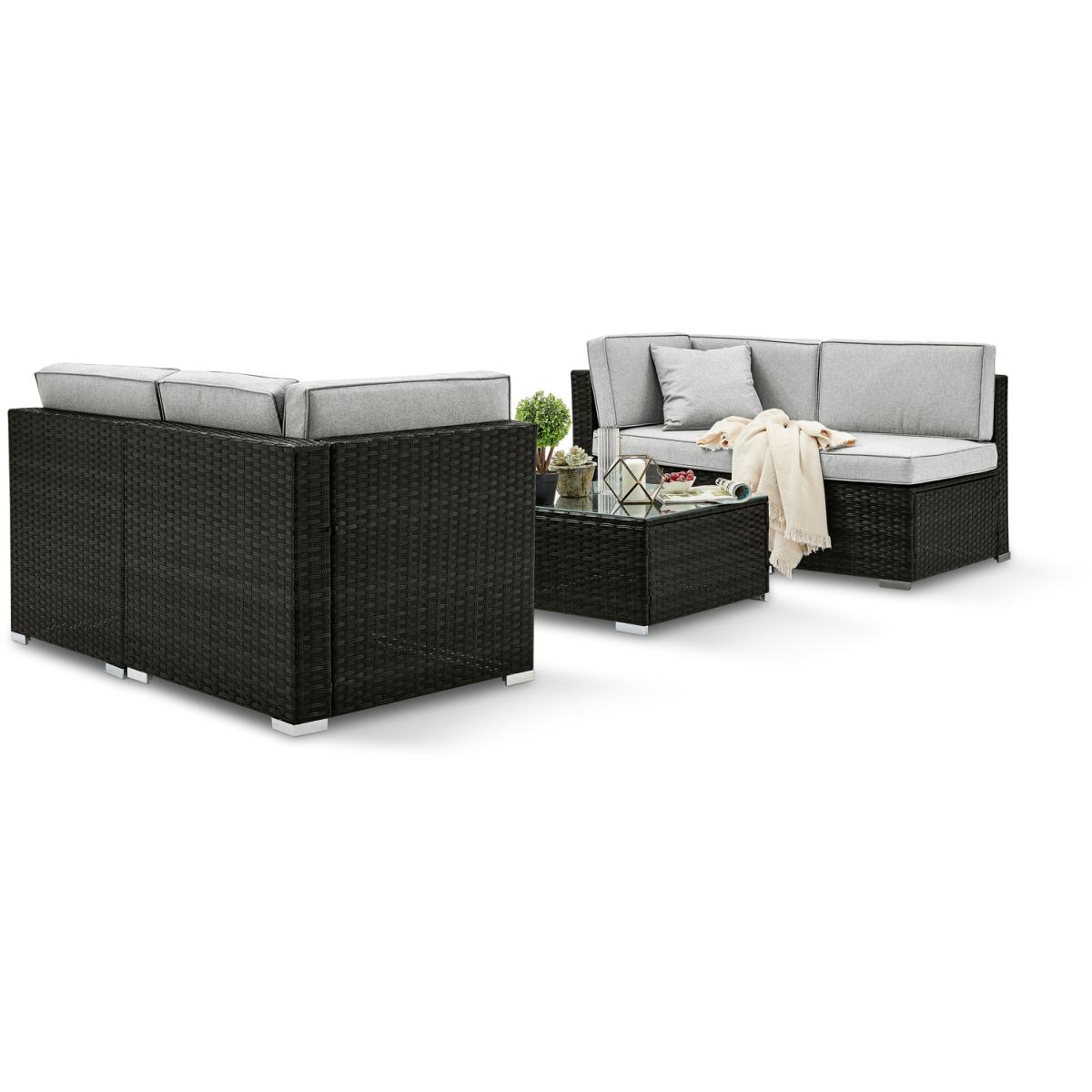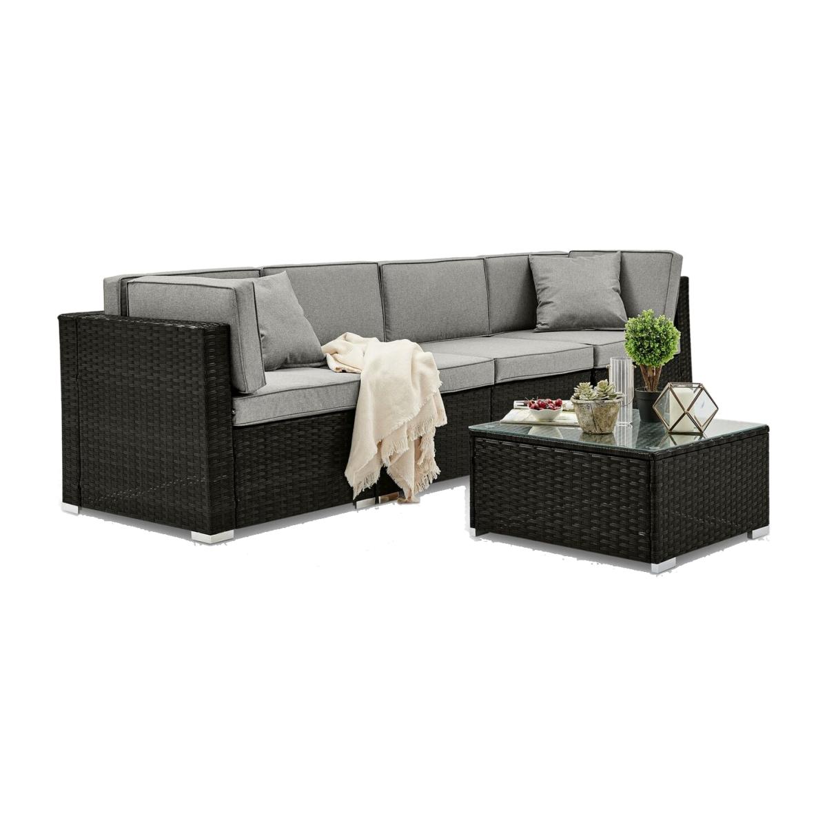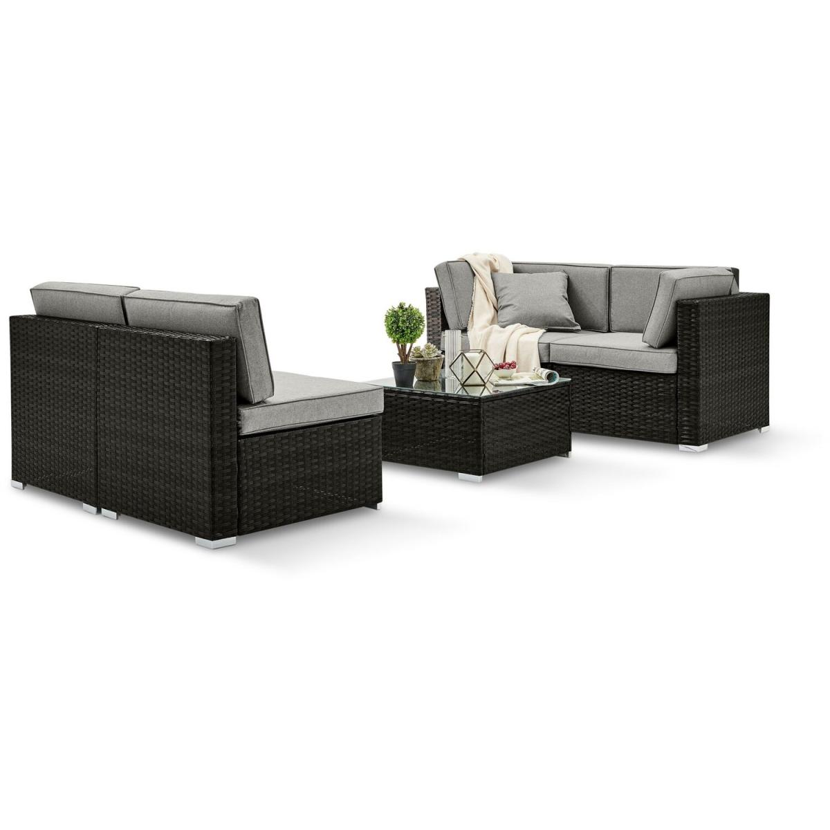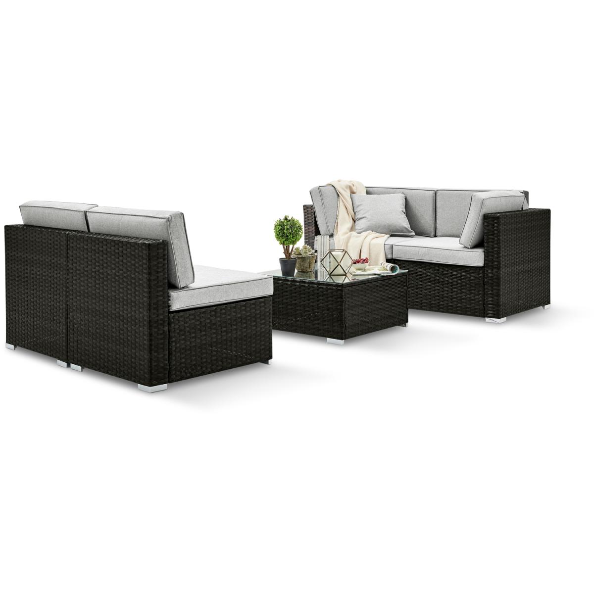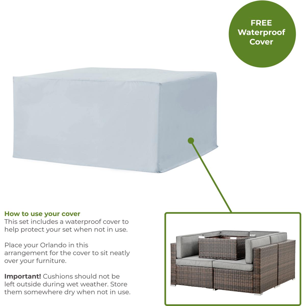 This PE resin rattan outdoor sofa is perfect for gardens of all shapes and sizes and can seat up to 4 people. Thanks to its modular design, this rattan sofa set can be arranged in lots of different shapes to fit your garden. The textured PE resin black rattan weave gives a contemporary look. The rattan frame can be left outside all year round and is easy maintenance, needing just a wipe down with a soft cloth to remove any built up dirt. The inner frame is made from metal which is strong as well as lightweight, durable and weather-resistant. The thick, foam filled seat and back cushions are 10cm thick providing comfort and support for you to sit back, relax and enjoy the sunshine. The cushions are splash resistant so if you spill a drink on the cushion you can firmly pat the underside of the cushion to encourage the droplets to roll off and avoid them soaking in. Each piece of the modular rattan sofa can be moved around to suit you, there are lots of options to suit the occasion, whether you want to stretch out and sunbathe or have lots of seating for friends and family over for a barbecue. The clips included hold the pieces together so they don't slide apart. The matching square coffee table with tempered glass top provides plenty of space for drinks and nibbles. This modular garden sofa requires assembly with detailed guides included with your new sofa. Our customer service team are also available if you have any questions. This set includes a FREE water resistant cover but please note, this is not fully waterproof and you should still store your cushion somewhere dry during wet weather and through winter
