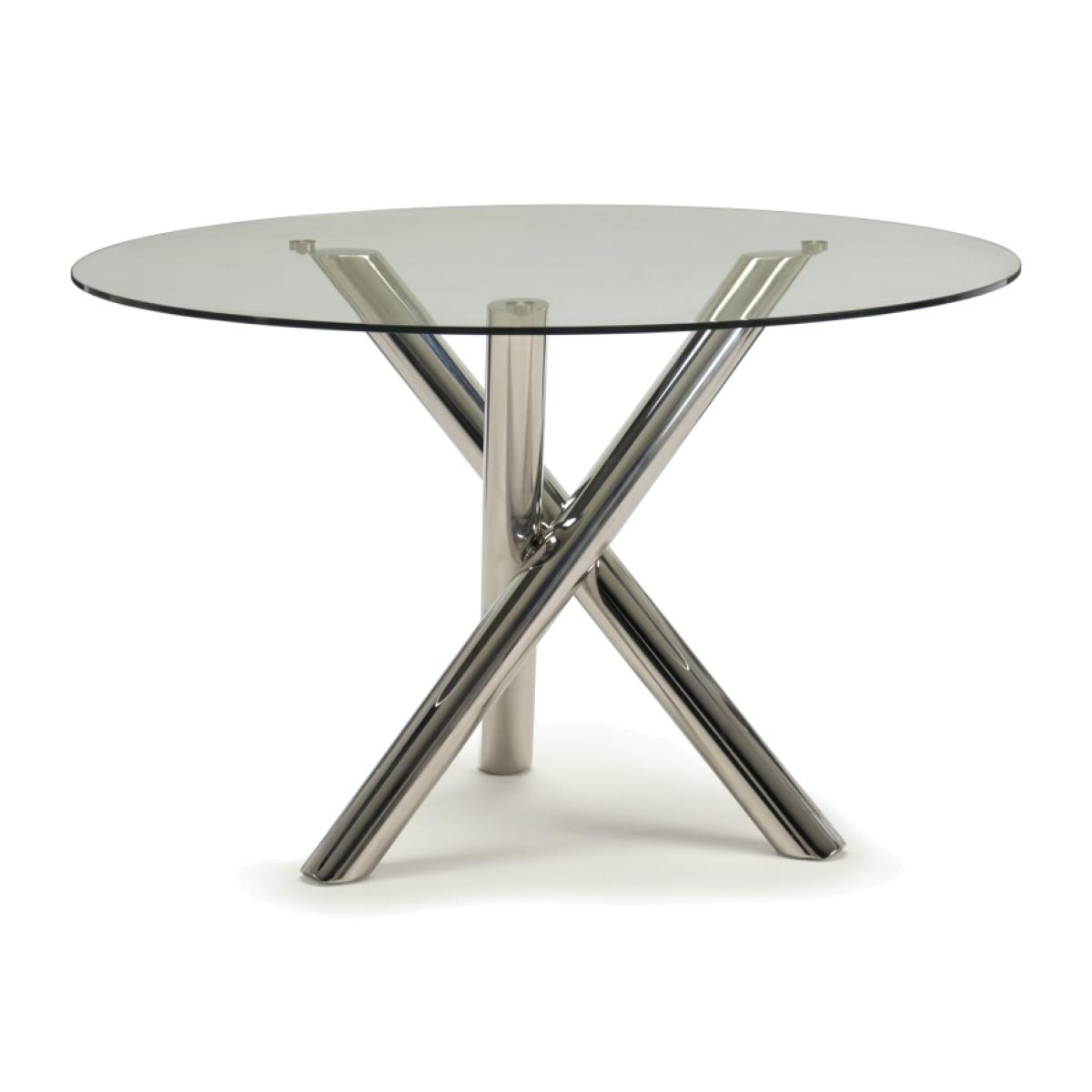 The Orlando Dining Table proves that small doesn’t mean short on style. Designed for modern living, this neat round dining table comfortably seats four, making it the perfect choice for apartments, breakfast nooks, or compact dining spaces. Its clear toughened glass top brings a sense of lightness and space, while the polished stainless steel base adds a sleek, contemporary touch. The combination of materials creates a refined, airy look that blends effortlessly with both minimalist and sophisticated interiors. Elegant yet practical, the Orlando Table is a stylish solution where space is at a premium but design is still a priority. Key Features: Seats four comfortably – ideal for smaller dining areas Toughened clear glass top for a clean, modern finish Polished stainless steel base for strength and visual impact Compact footprint with a light, open aesthetic Dimensions Width 120cm Depth 120cm Height 74cm. All screens vary in colour reproduction and whilst every effort has been made to display the colour as accurately as possible it is for guidance only.