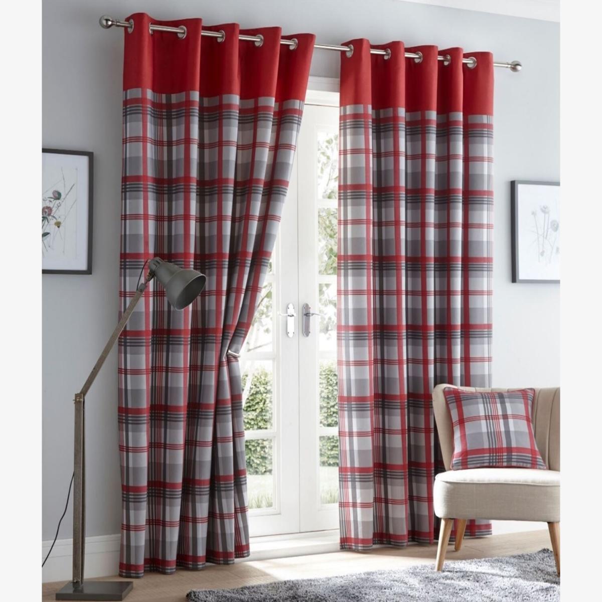 Orleans Check Eyelet Curtain - Red / 183cmcm