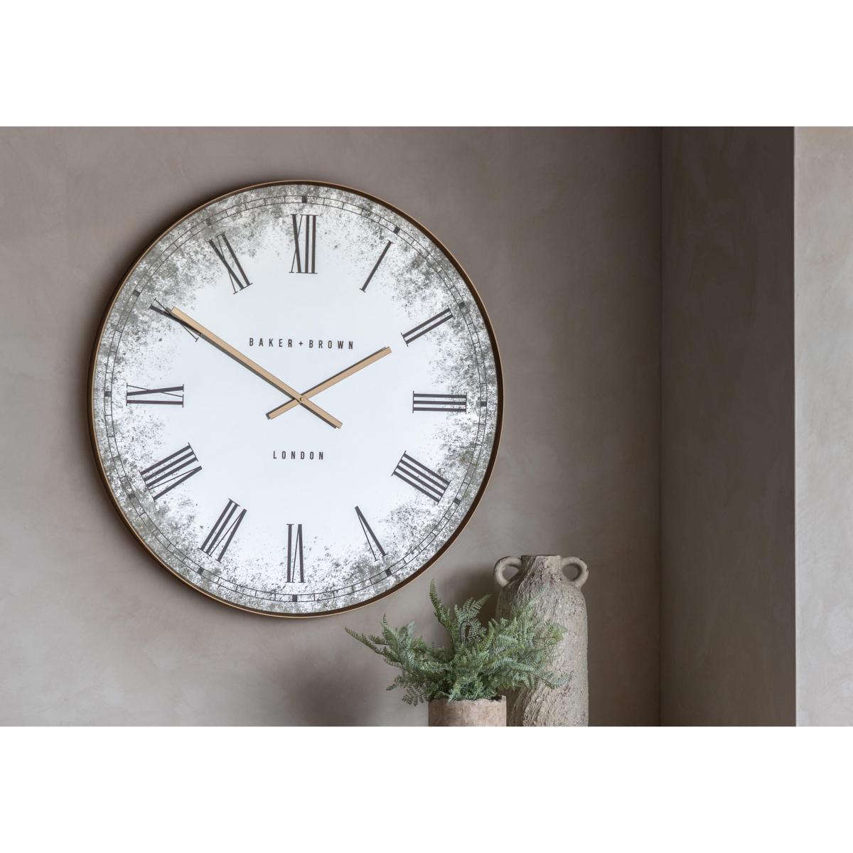With its elegant Roman numerals, this large wall clock draws on traditional clock design and adds modern details like the slender hands and distressed face. Why you'll love it This large wall clock blends traditional style with modern details. Large, easy-to-read round face with Roman numerals and slender hands. On-trend lightly distressed finish. Ideal for a feature wall or in a kitchen diner. Exclusive to Furniture Village. This wall clock is part of the Furniture Village home accessories collection. What you need to know Aluminium frame. For indoor use only. Requires 1 x AA battery (not included). Please follow the supplied care and hanging instructions. Be sure to use only the recommended wall fixing. Dimensions Diameter: 80 cm (32 in). Depth: 3 cm (2 in). Item code: ORLOCLOCGOLD-001