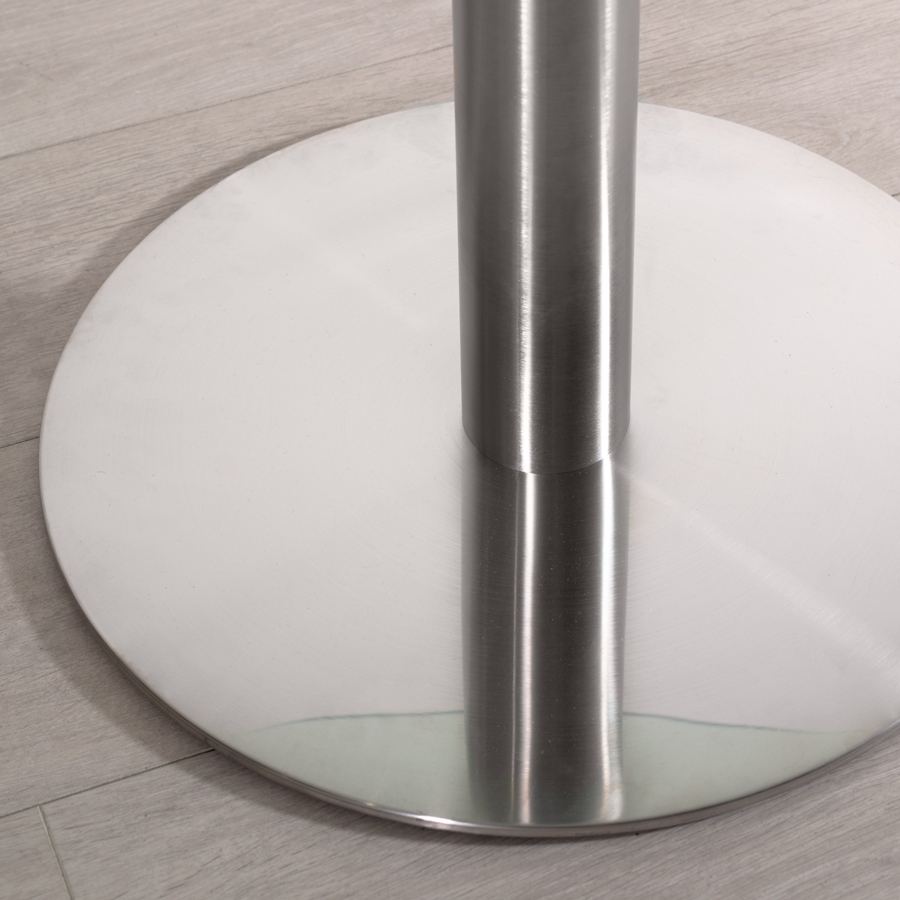 Pure in form, Orlov is understated, elegant and timeless Brushed stainless steel base Toughened safety glass top with polished edge Comfortably seats 4-5 people Simple assembly required, approximately five minutes