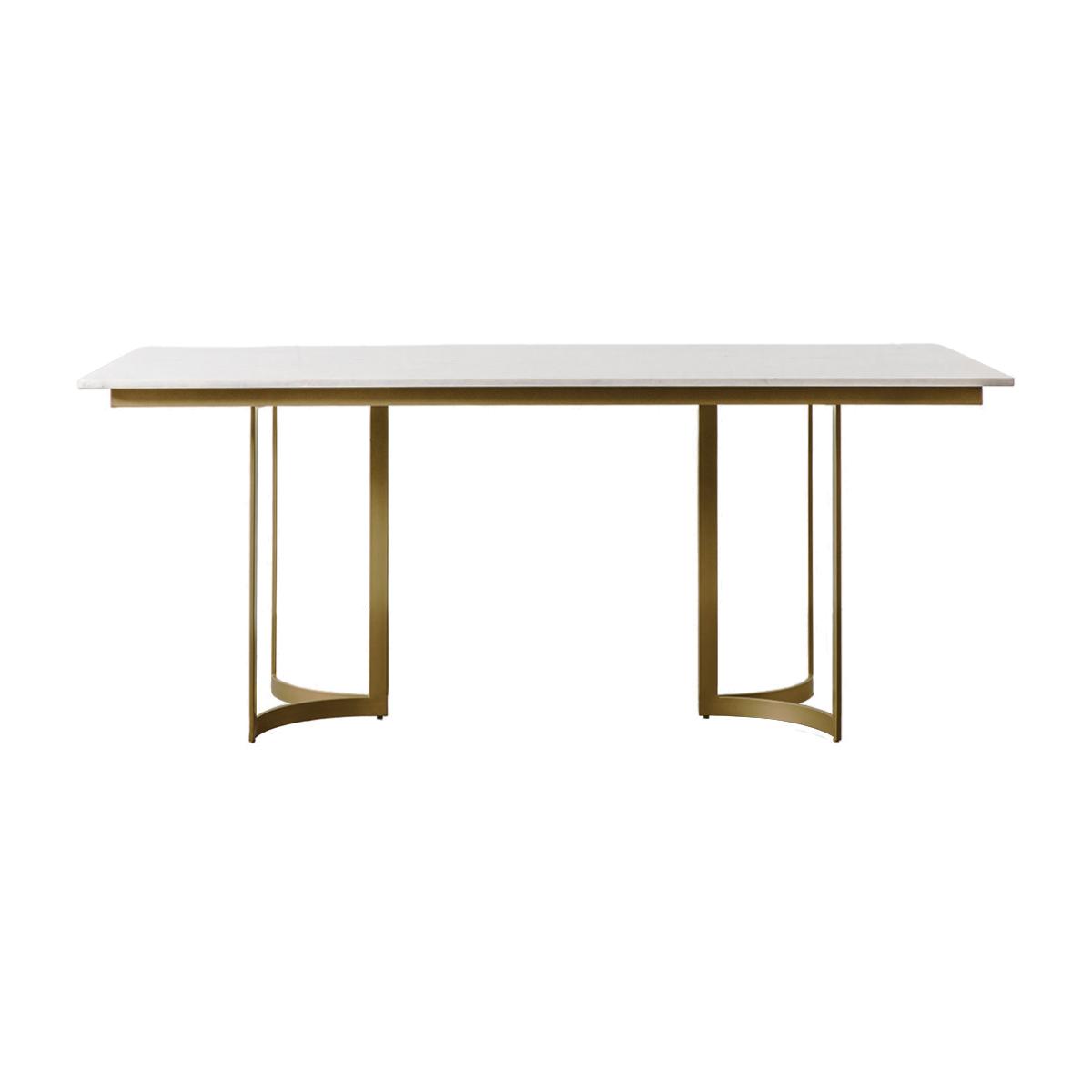 Make a statement with the Orly Dining Table. Whether your hosting a dinner party or enjoying a casual meal with your family, the marble top and metal legs provide a sturdy surface for all of your dining or entertaining needs. Also available in gold.