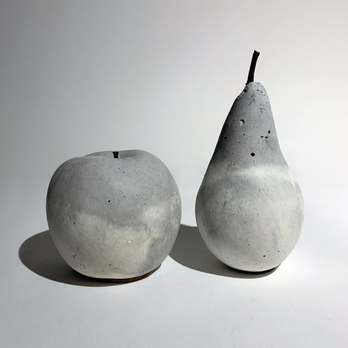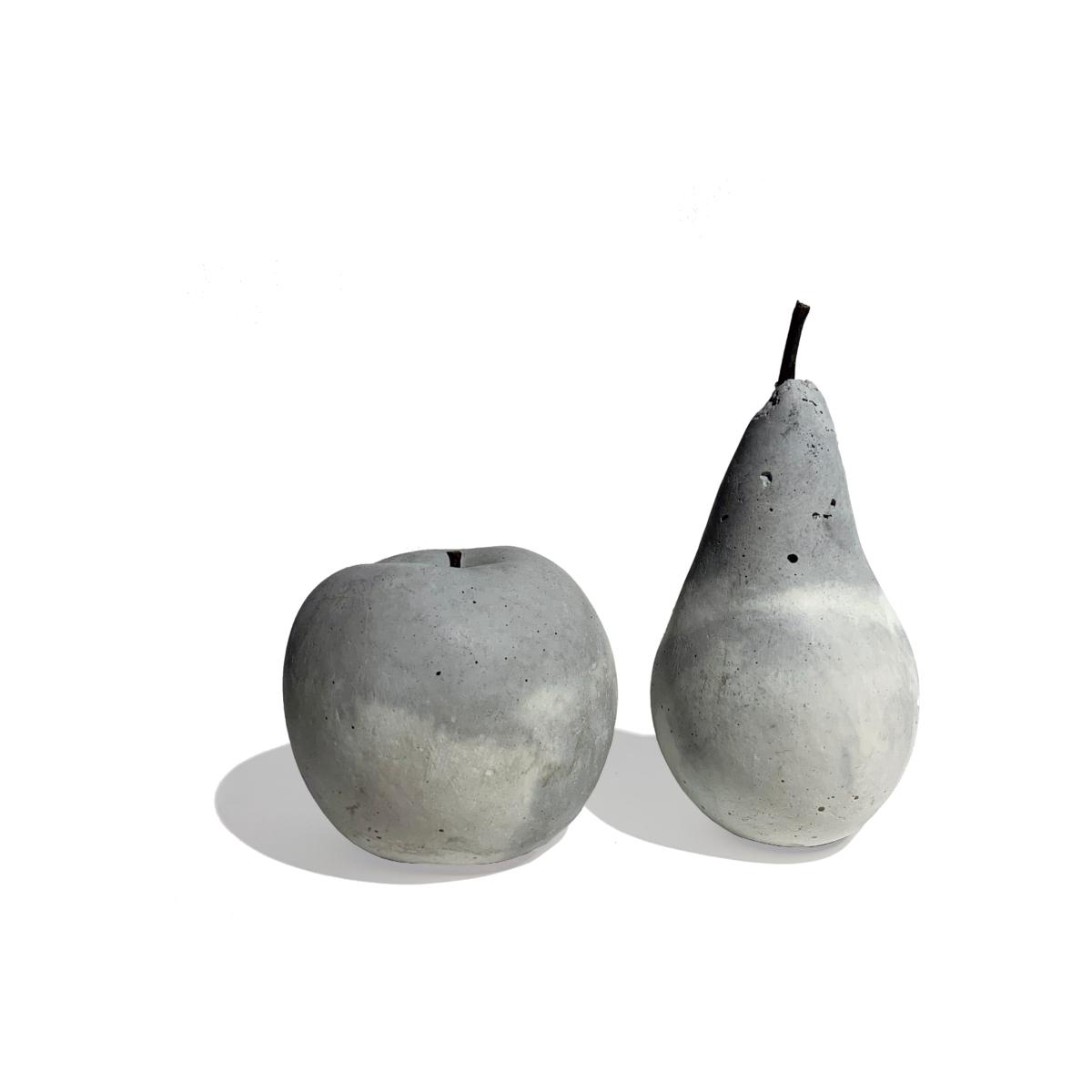 Exhibited in the London Design Fair, this Concrete Apple and Pear are handcrafted from fine pigmented cement and topped with a natural stalk. Soothing on the touch and pleasing on the eye with its pastel colours, the fruit set adds a subtle touch of warmth and cosiness to the home. A mini-sculpture that is as much a decorative piece as it is a functional home accessory - perhaps a set of playful paperweight? A set of the fruits might just help with getting your 5-a-day! Comes in a range of colour and a cork base is attached to each piece to prevent scratching. *The marble grains is formed by the natural blending of two colours, creating a individual expression- meaning each set is one of a kind and no two sets are alike. As is the nature of hand-crafted products made from the casting process, a small seam from the original mould is visible at the back of the fruit. Slight variation on colour is expected between each batch of production.