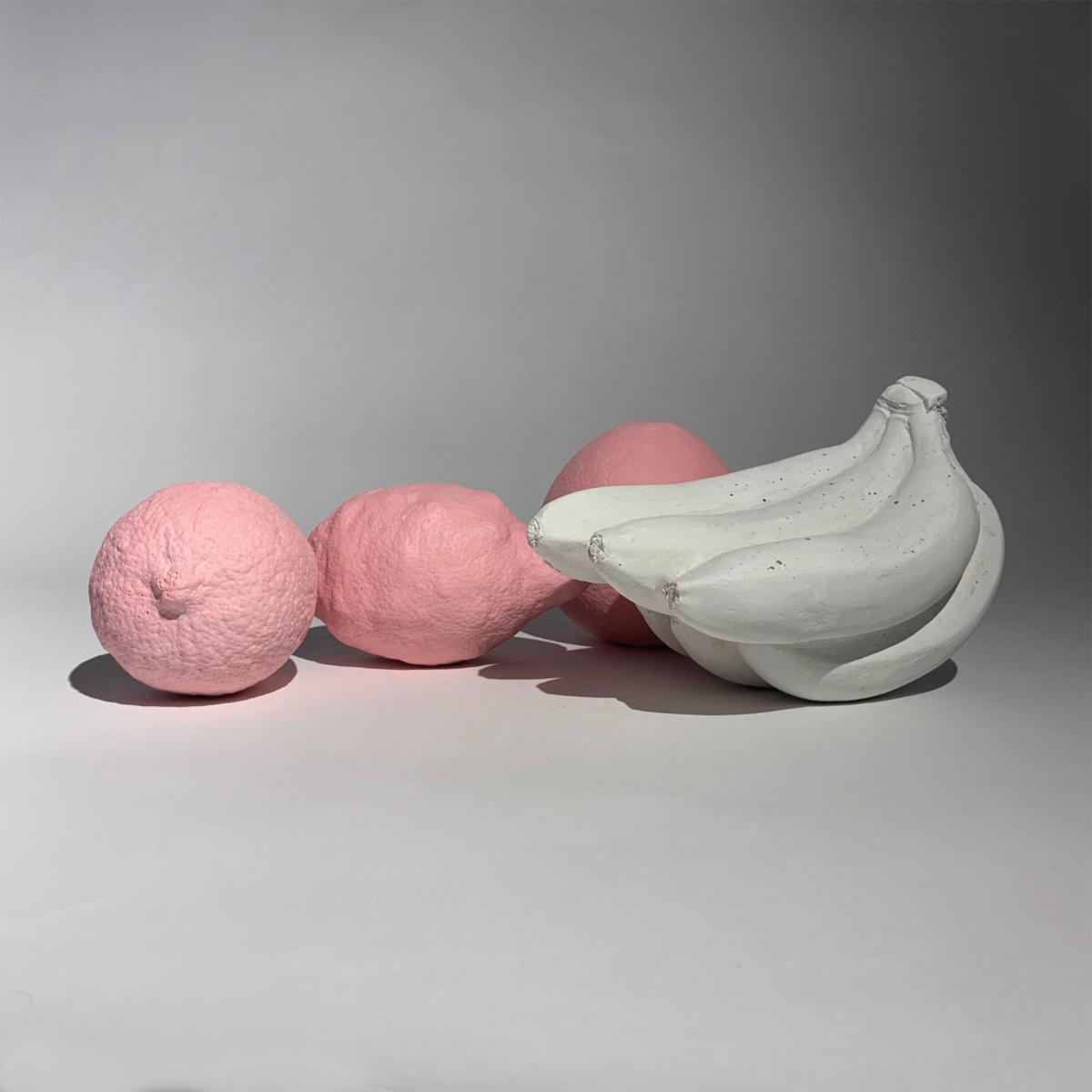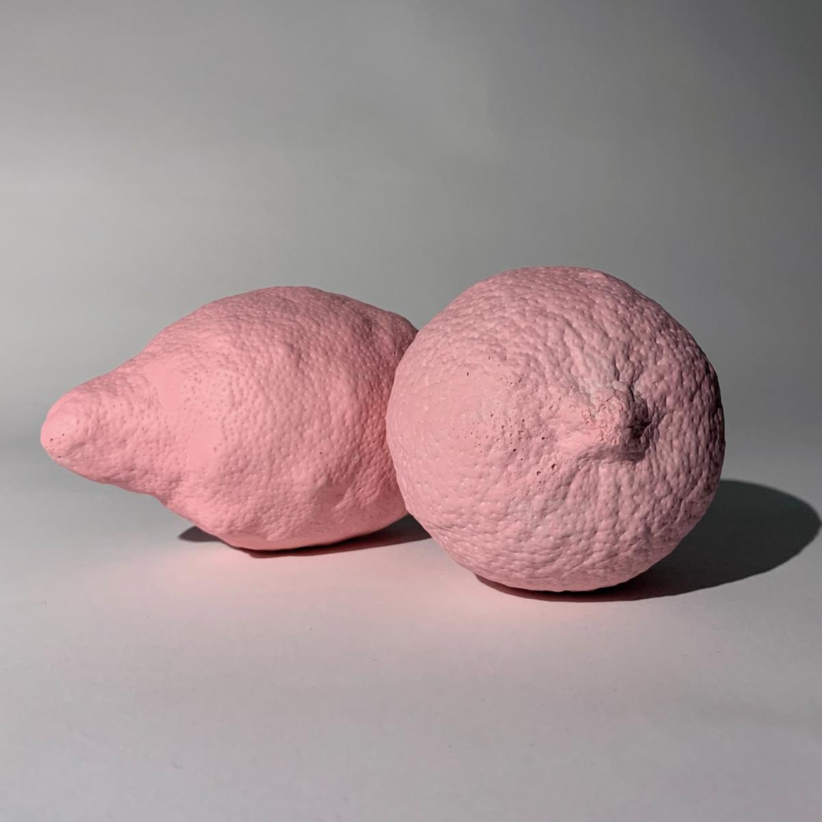 Exhibited in the London Design Fair, this fruit set is part of the Large Fruit Spectrum series. Handcrafted from fine pigmented cement and topped with a natural stalk, the fruits are soothing on the touch and pleasing on the eye with its pastel colours. Perfect to add an artistic touch and playfulness to the home. Banana Bruch of Six L18cm x W9cm x H13 Lemon1 Dia 7.5cm x H12cm Lemon2 Dia 7.5cm x H9cm Grapefruit Dia 9cm x H10cm