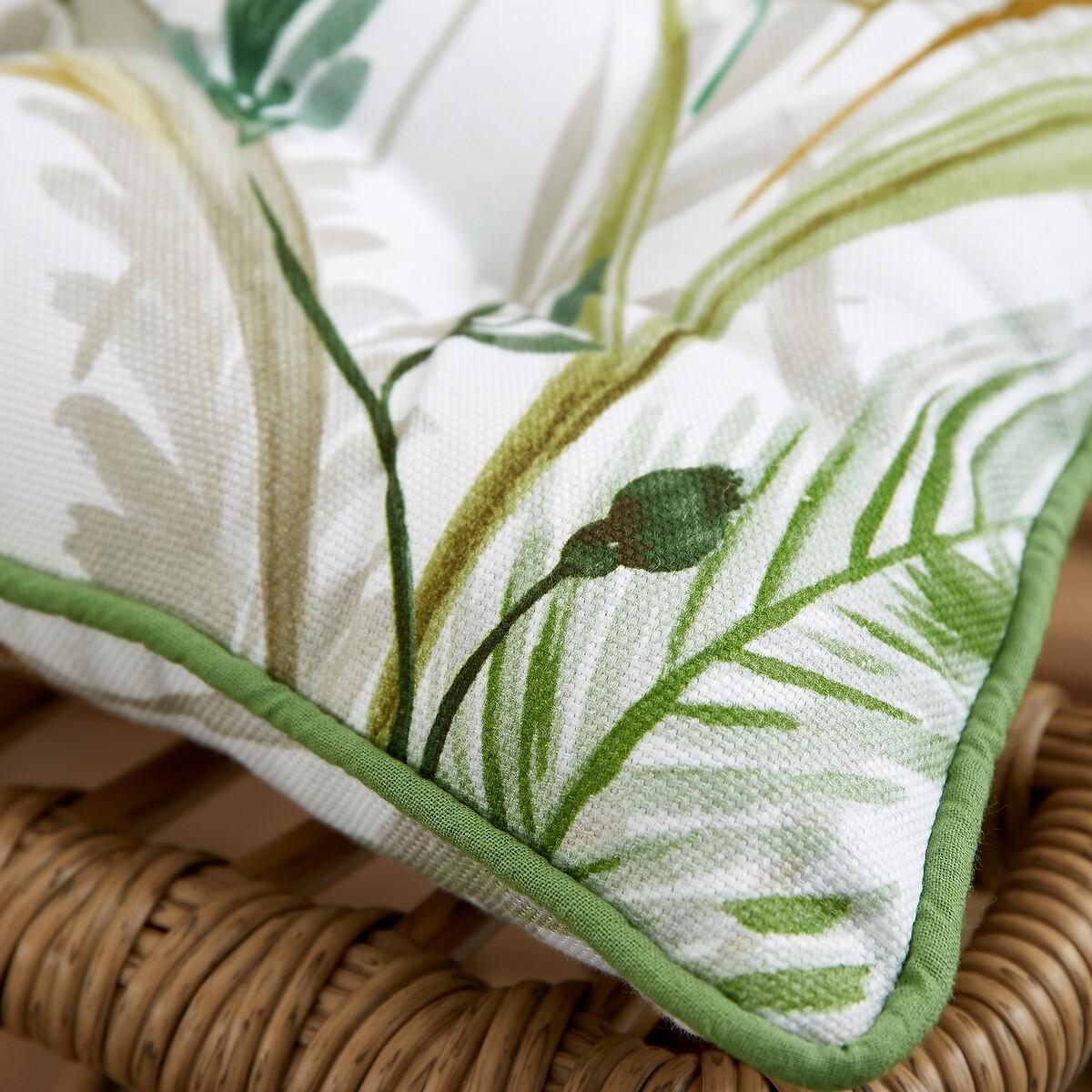 I really like this outdoor seat pad because of its fresh, natural design that pairs well with relaxed, garden-inspired interiors. It’s ideal for adding comfort to garden chairs, especially in outdoor dining settings or cosy patio corners. The cotton cover makes it practical for outdoor use, and I recommend styling it with neutral or earthy tones to build a cohesive, organic look. For a polished finish, layer it with other outdoor cushions in similar botanical motifs or textures like wicker and rattan furniture. It’s a simple but effective way to bring a touch of the countryside into your garden seating, making outdoor spaces feel more inviting and stylish.