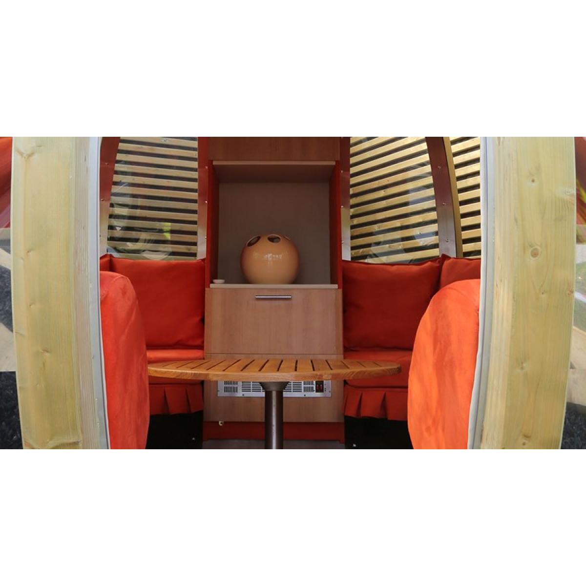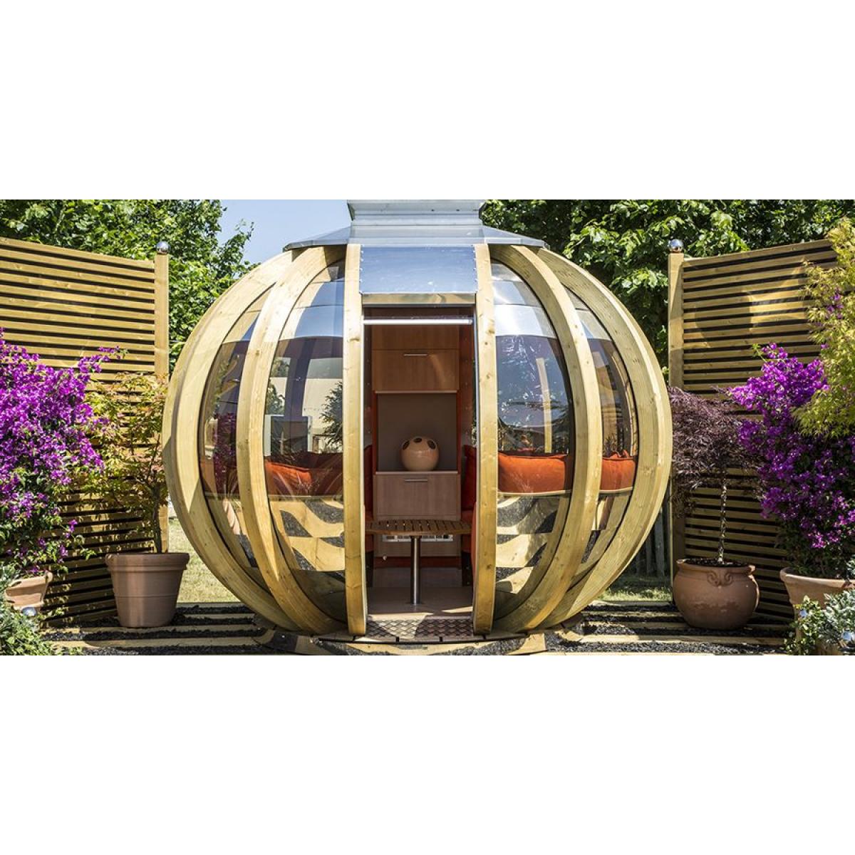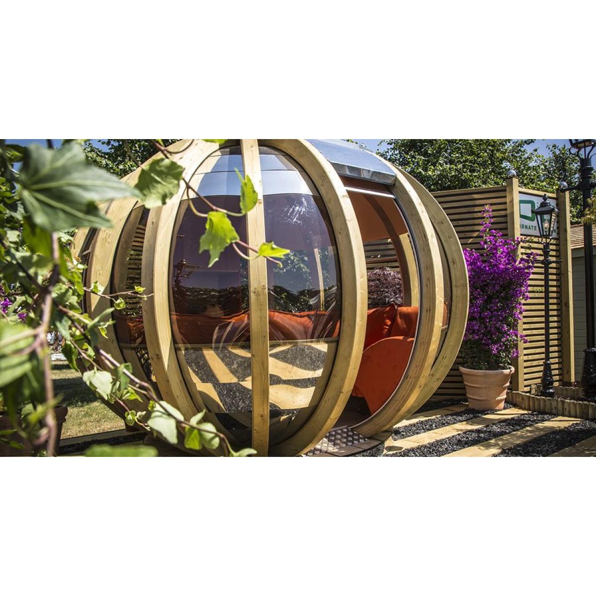 Escape the pressure of everyday life with Ornate Garden's latest design, the ultimate way to enjoy your garden environment. Stylish, spacious and superbly finished the Deluxe Summerhouse comes with two built-in sofas that will comfortably seat ten guests, providing ample room for you and your friends to relax outdoors. The option of having interior lighting fitted and a bespoke interior to suit your requirements, this model will be all you ever dreamed of. Ornate Garden's aim is to still make you feel part of the garden, and they have achieved this by giving windows all around the pod for a full panoramic view. By keeping the stainless steel roof to reflect heat and offer shade, this summerhouse will always be a comfortable outdoor living space. It also benefits from the ability to have a 240v power supply, which can power its down lights and soft colour changing mood lighting that can be set to a colour that suits the occasion. Models will also come with a combined heater/fan to extend your outdoor living experience right into the winter. The windows of the summerhouse have a bronze tint which will remove any glare which in turn will also help keep your pod cool. The sofa fabric is Macrosuede+ and is Ornate Garden's enduring and hard-wearing faux-suede with a practical Stain-Guard finish. The softness and easy cleaning makes it perfect for upholstery, especially where pets or children are present. Macrosuede+ can be easily cleaned, yet easy to care for as the fibres are very short compared to other fabrics.