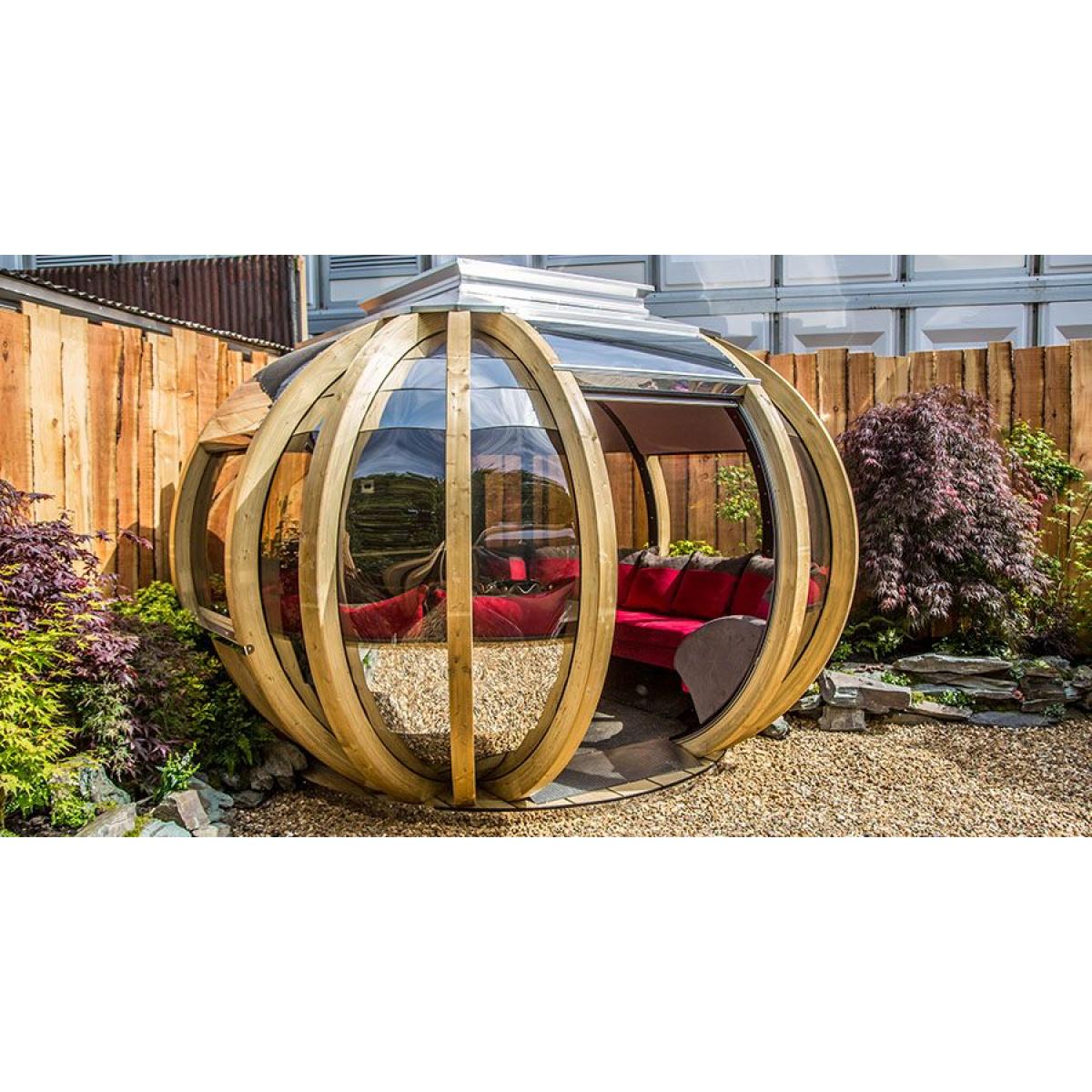I love this garden lounge - it’s a real statement piece that blends functionality with a hint of novelty. Its rounded, wooden structure works brilliantly in contemporary or rustic garden settings, adding a cosy yet stylish retreat. To style it effectively, consider pairing with natural textiles like linen cushions or throws to enhance its organic feel, or go for vibrant outdoor fabrics to create a playful vibe. It works particularly well in gardens that have a mix of greenery and legacy landscaping, where it can serve as a focal point for relaxation or entertaining. Practical tips include positioning it in a shady spot during the hottest months or near the dining area for easy access to outdoor dining accessories. This is a fun, versatile addition for those looking to make a bold yet inviting garden feature.