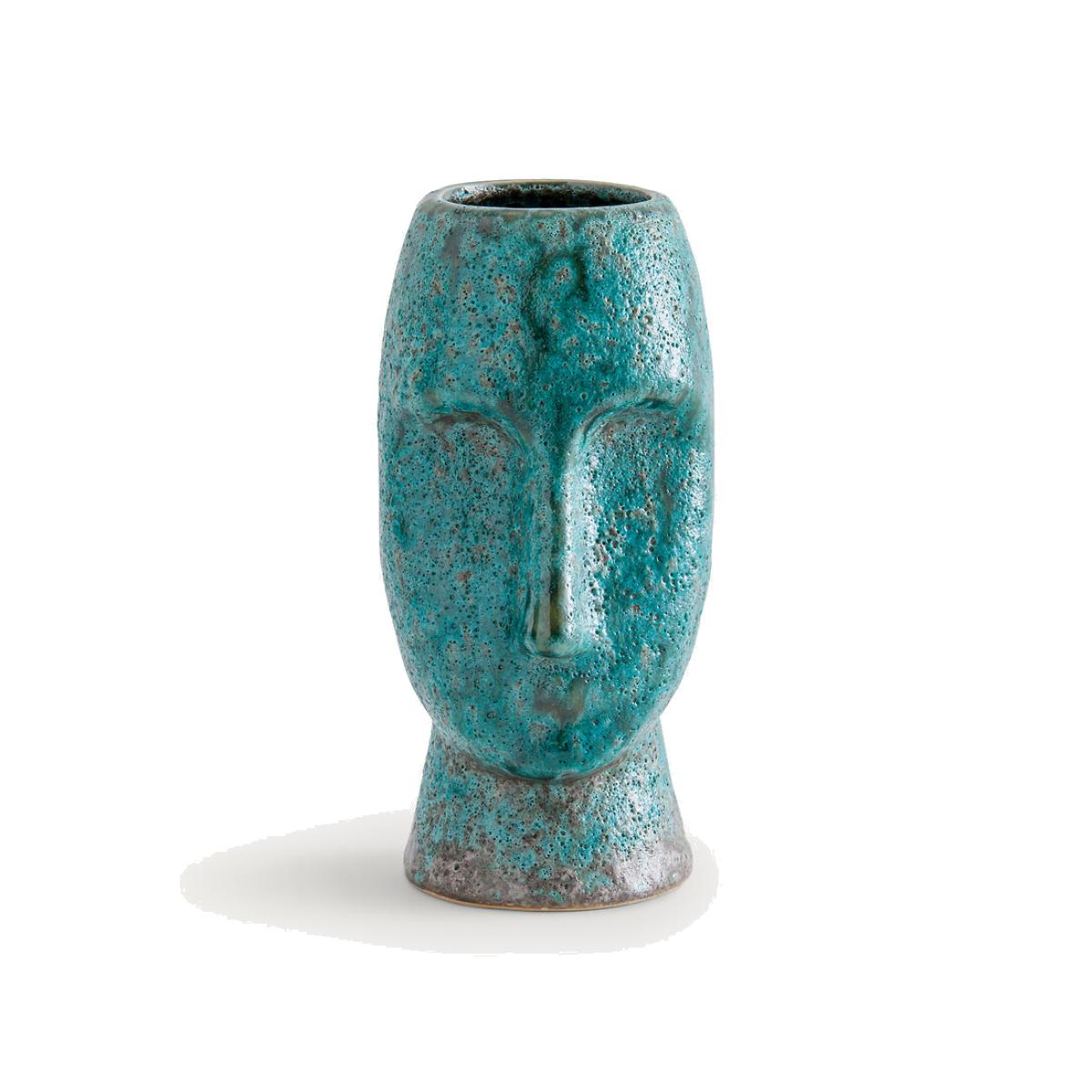 I love this face-shaped ceramic vase for its bold, sculptural presence-it works particularly well in modern or eclectic interiors where it can serve as a statement piece. Its striking turquoise glaze adds colour and texture, making it ideal for adding visual interest to shelves, side tables, or mantelpieces. For styling tips, consider pairing it with minimalist greenery such as simple eucalyptus or dried botanicals to emphasise its artistic shape, or leave it on its own to highlight its unique design. This vase’s distinctive form makes it versatile: it can complement both contemporary and boho spaces, but it’s especially effective in settings that enjoy layered textures and curated accessories.