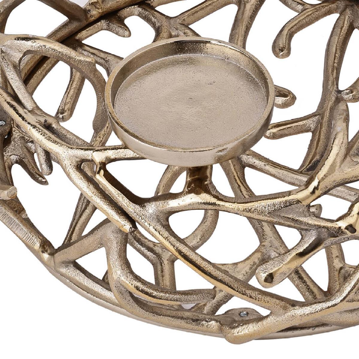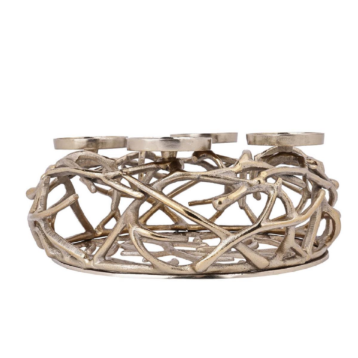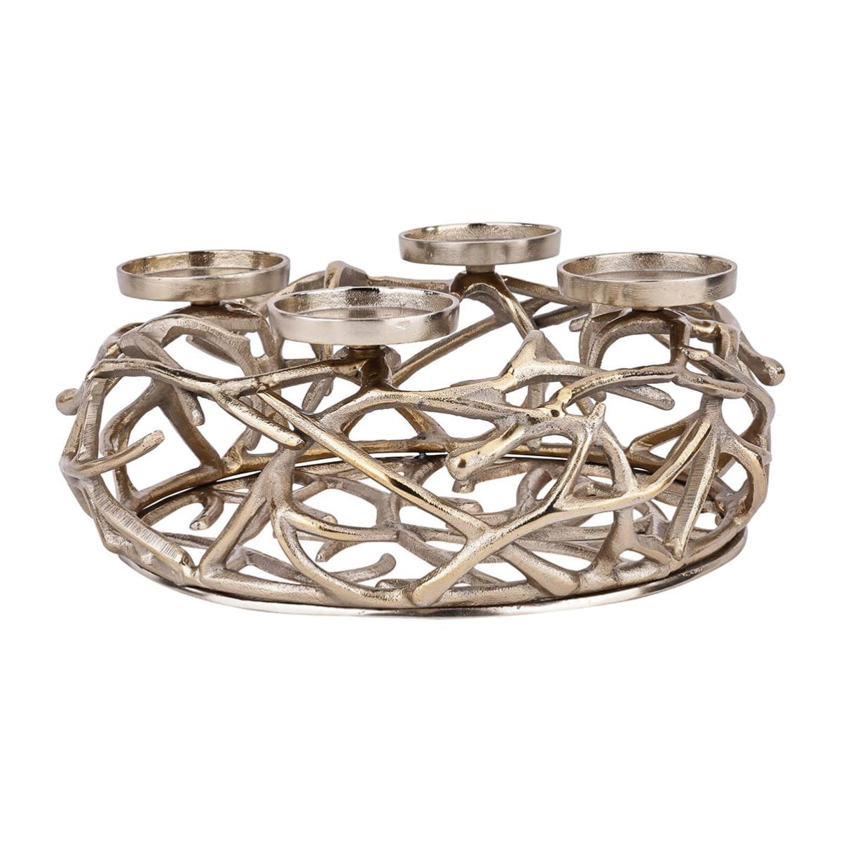 The Oroquieta gold candle holder is designed to look like a nest. With its four "floating" tea-light holders, the Oroquieta nickel-plated aluminium `twigs` bowl is a modern take on the wreaths of yesteryear. The Oroquieta gold candle holder is designed to look like a nest. With its four "floating" tea-light holders, the Oroquieta nickel-plated aluminium `twigs` bowl is a modern take on the wreaths of yesteryear.