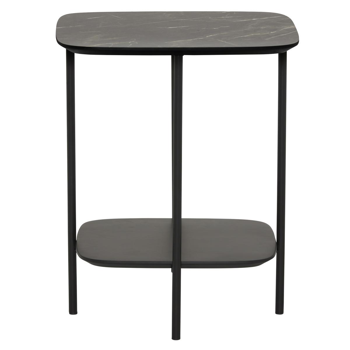 Perfect to sit at the side of your sofa or favourite armchair the Orpheus Side Table is not only practical but aesthetically pleasing whichever room it is placed in. With its contemporary features such as the faux black marble finish and black metal the Orpheus Side Table still oozes a timeless style yet useful with an additional shelf for extra storage. Other items are available in this range.