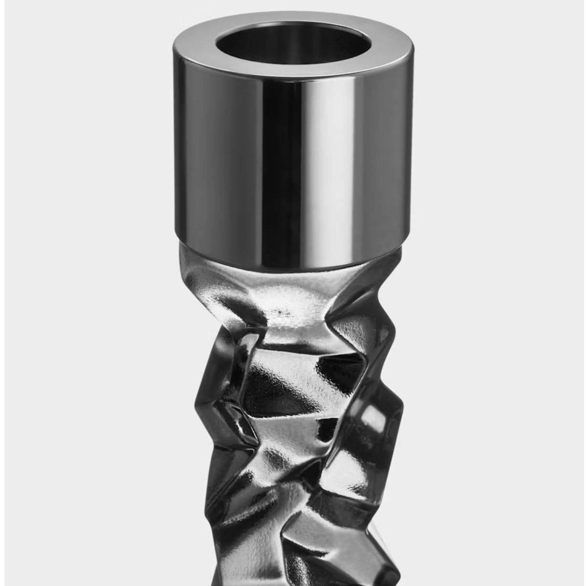 Orrefors of Sweden | Carat Candlestick Anthracite with Stainless Steel Detail | Medium - 2 Pack