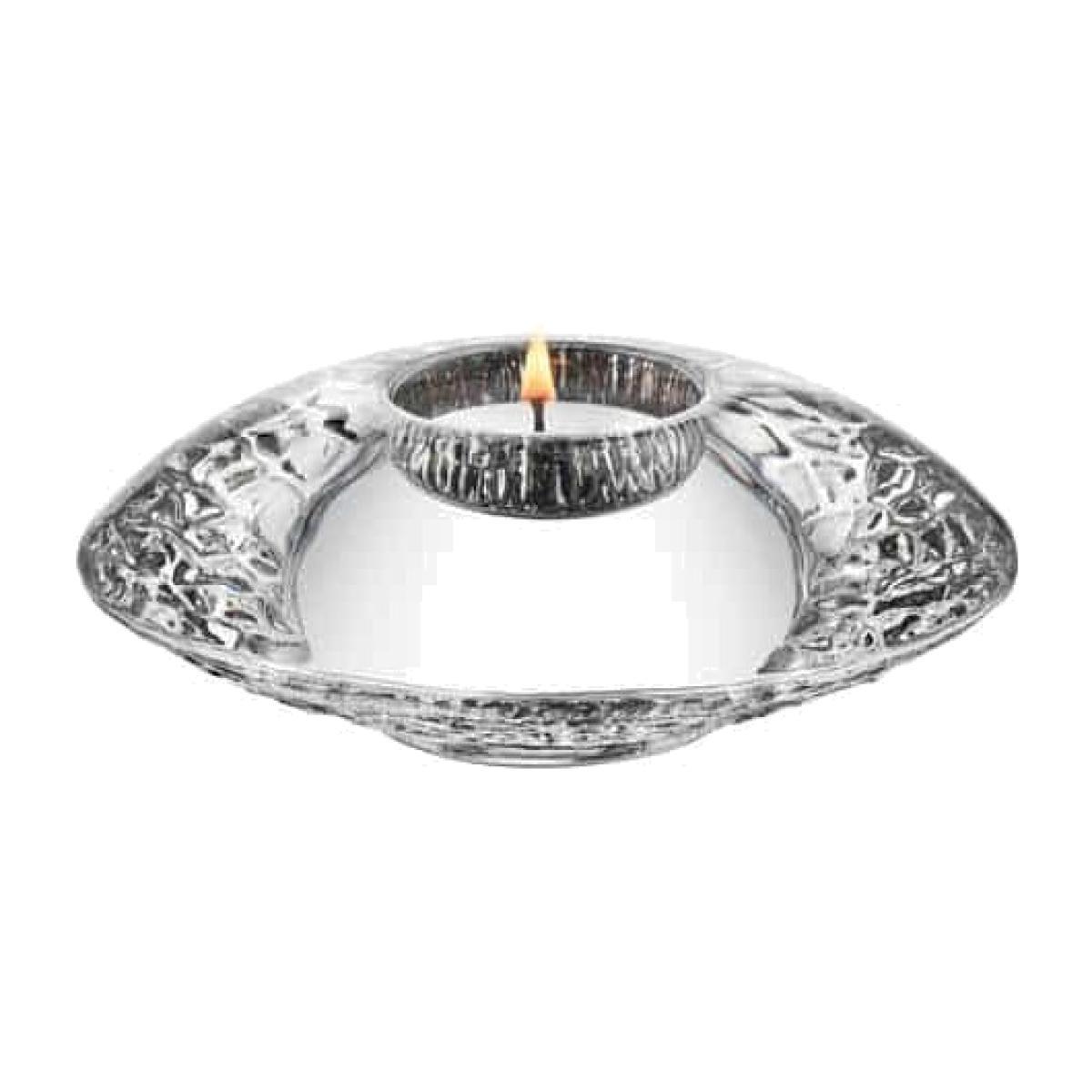 The popular Discus tealight holder is now available in steel, gold and frosted colours. Designed expressly to herald the World Athletics Championships in 1995, inspired by its namesake, the discus is polished above and patterned beneath, the finish sparkling in the candle glow like an Olympic flame. Designer- Lars Hellsten. Lars Hellsten (b. 1933) studied sculpture at the Collage of Arts, Crafts and design i Stockholm before coming to Orrefors in 1972. He is also the designer behind such collections as CORONA and ODYSSEY and the heart-shaped AMOUR and MY HEART. Nature clearly inspire his art glass, too, including many grand pieces well suited for public places. His glass is characteristically massive and forceful, whether it be cast, mould-blown or free-blown.