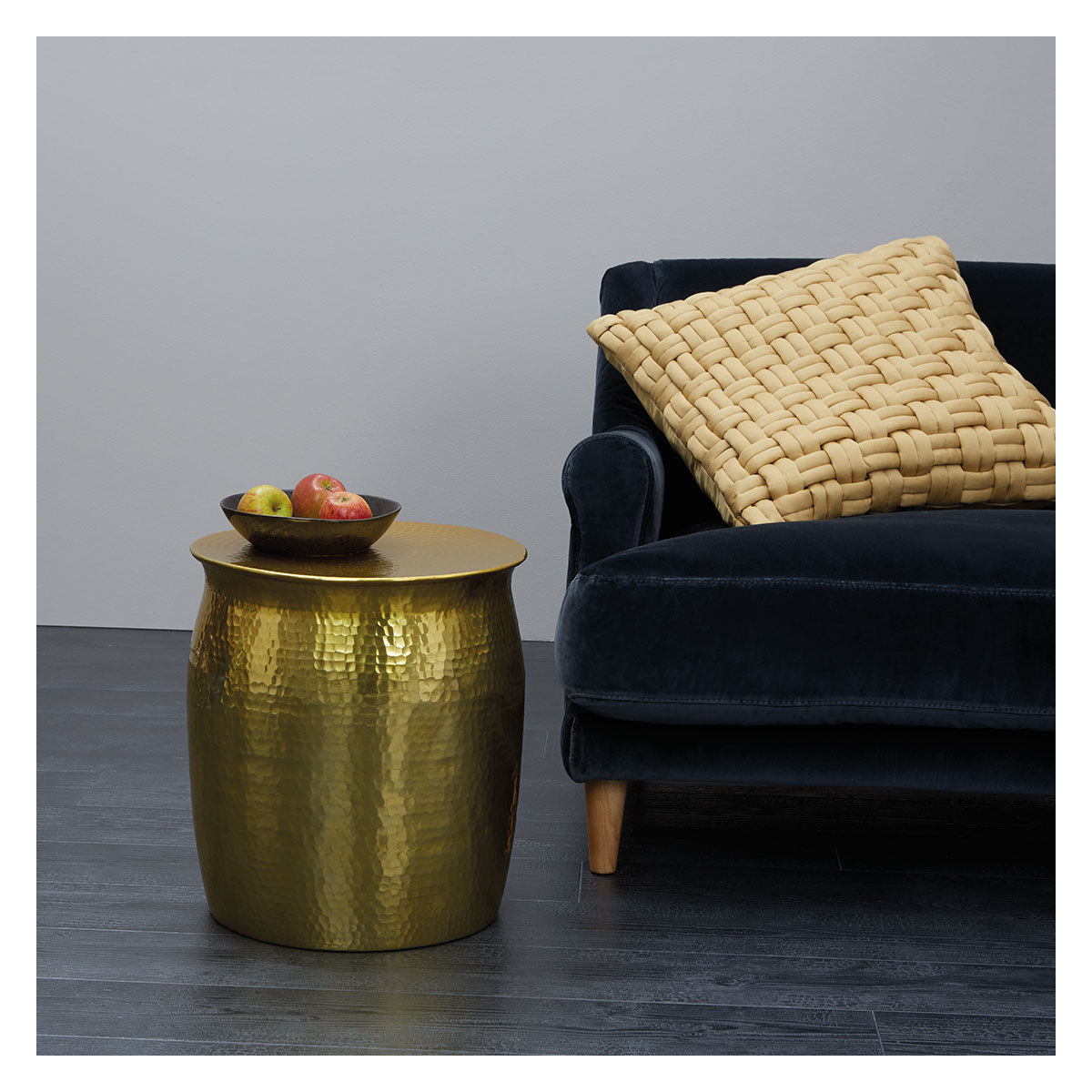 I love this side table for its bold brass finish and hammered texture, which add a touch of visual interest without overpowering a space. It's versatile enough to work well in both contemporary and eclectic interiors, particularly those with warm metallic accents or natural materials. Practical styling tips include pairing it with neutral-toned cushions or textiles to highlight its shine, or using it as a statement piece in a minimalist setting. Its solid construction makes it ideal for bedside or corner use, and it can easily double as a small accent table or a stand for decorative objects.
