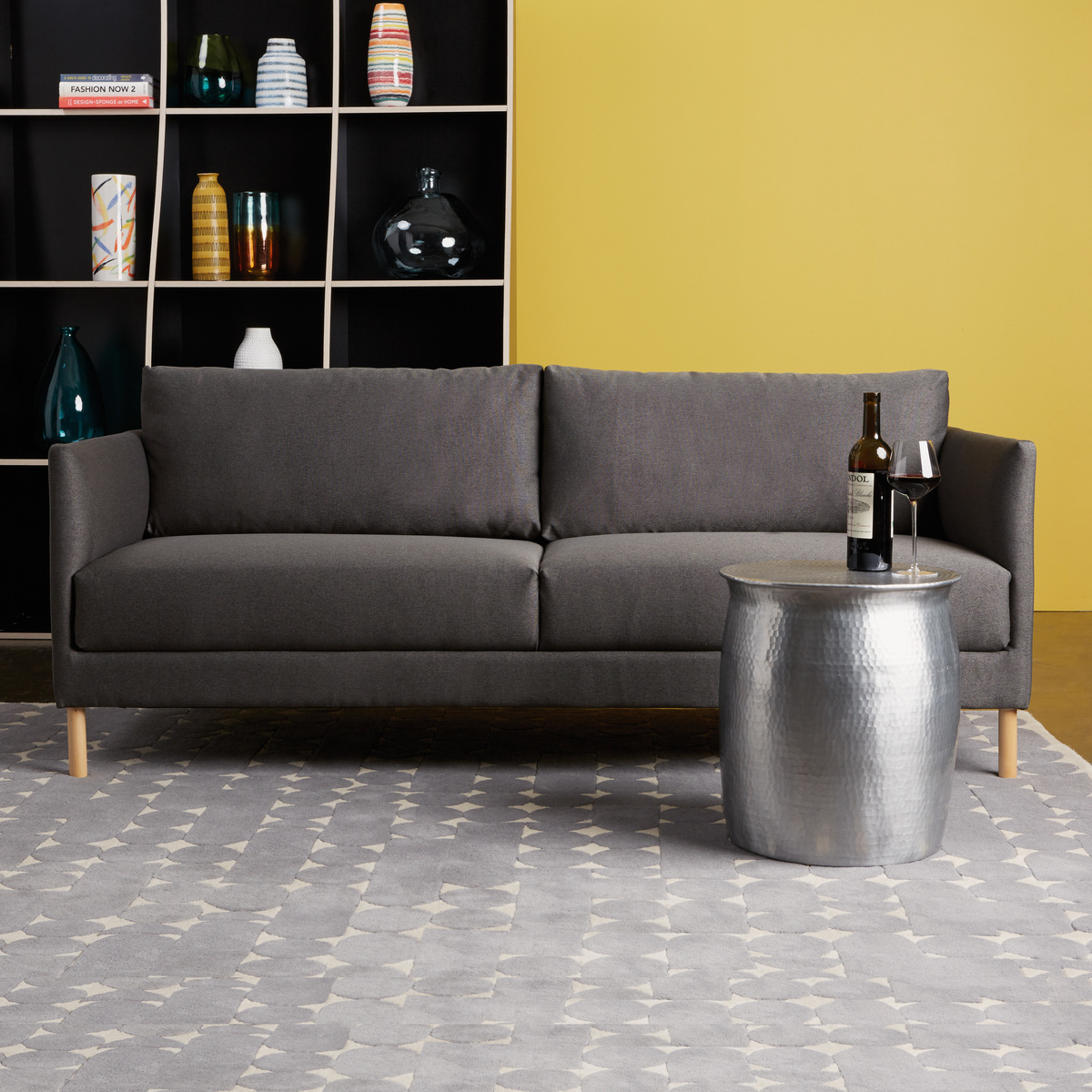 The hammered aluminium side table is a versatile piece that adds a subtle touch of sheen to various interiors. I love how its silver finish and textured surface bring a contemporary edge while remaining neutral enough to complement both minimalist and eclectic decor styles. It works particularly well in modern, industrial, or even Scandinavian schemes, effortlessly blending form and function. For styling, consider pairing it with metallic or glass accessories to enhance its reflective quality, or soften the look with cosy textiles on top. Its sturdy build makes it practical for use as a bedside table or accent piece in a living room, providing both visual interest and functional surface space.