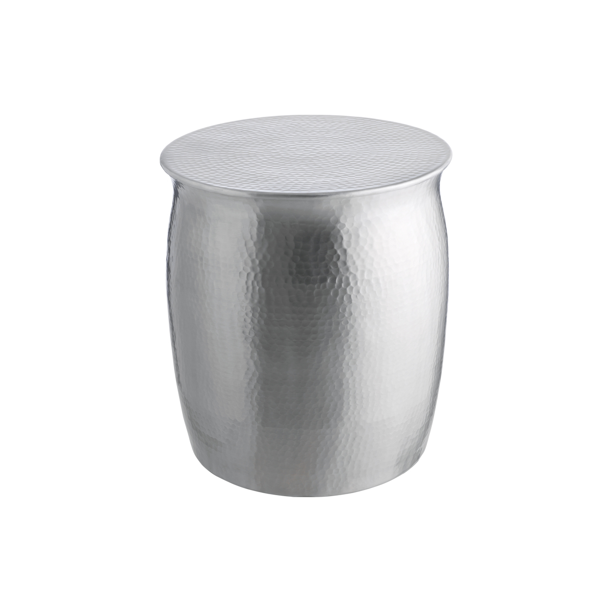 Orrico Hammered Aluminium Silver Side Table, Silver